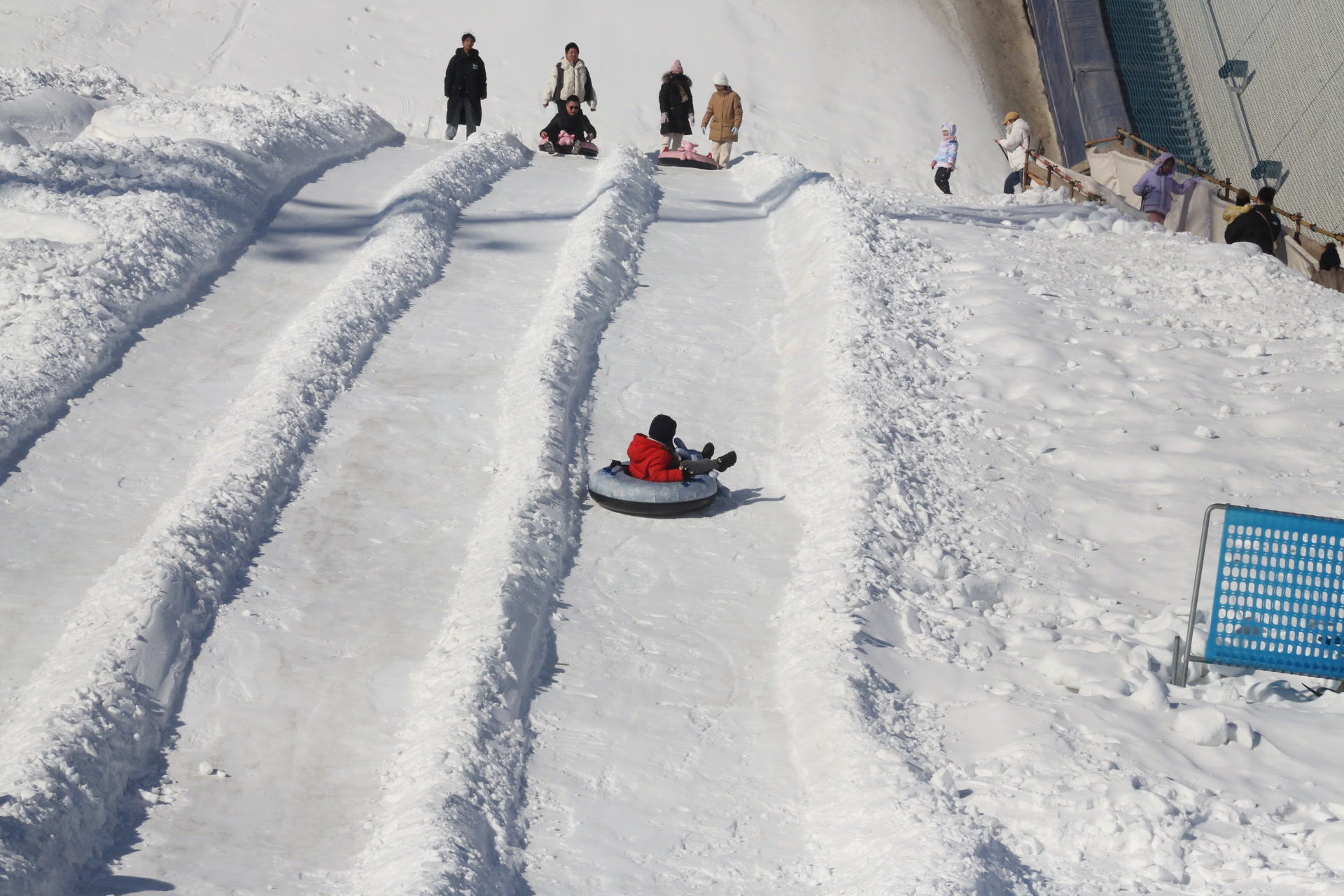 记者当日上午还在活动现场看到,九点过后,陆续有游客来到首钢大跳台顽酷冰雪季现场,体验包括由大跳台打造出的“雪圈冲浪”,还有许多游客在群明湖上的冰场体验冰车等游玩项目。