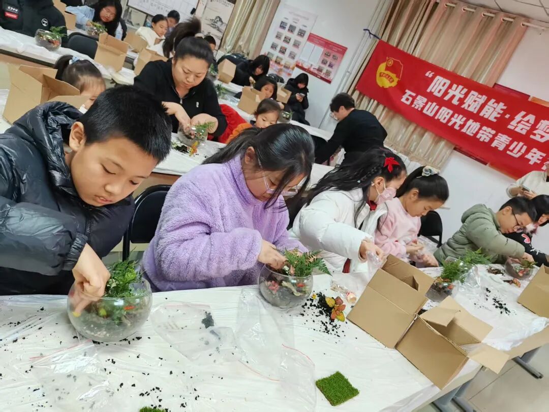 水泥厂社区联合团区委开展“水培微景观创作”活动。孩子们在老师指导下,利用玻璃缸、水草、彩砂等材料,动手打造属于自己的微型生态景观。活动融入了植物养护知识和环保理念,让孩子们在创作中感受自然乐趣。