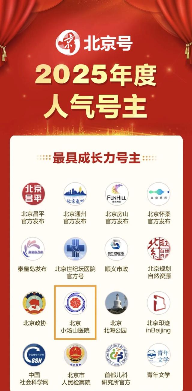 近日,北京日报客户端北京号2025年度人气号主正式揭晓!2025年个人号矩阵扩展迅速,特新设个人号人气号主,以体现个人创作者对推动北京号平台进一步发展壮大做出的积极贡献。北京小汤山医院账号凭借全年在阅读热度、内容质量等方面的卓越成长表现,荣获最具成长力号主。