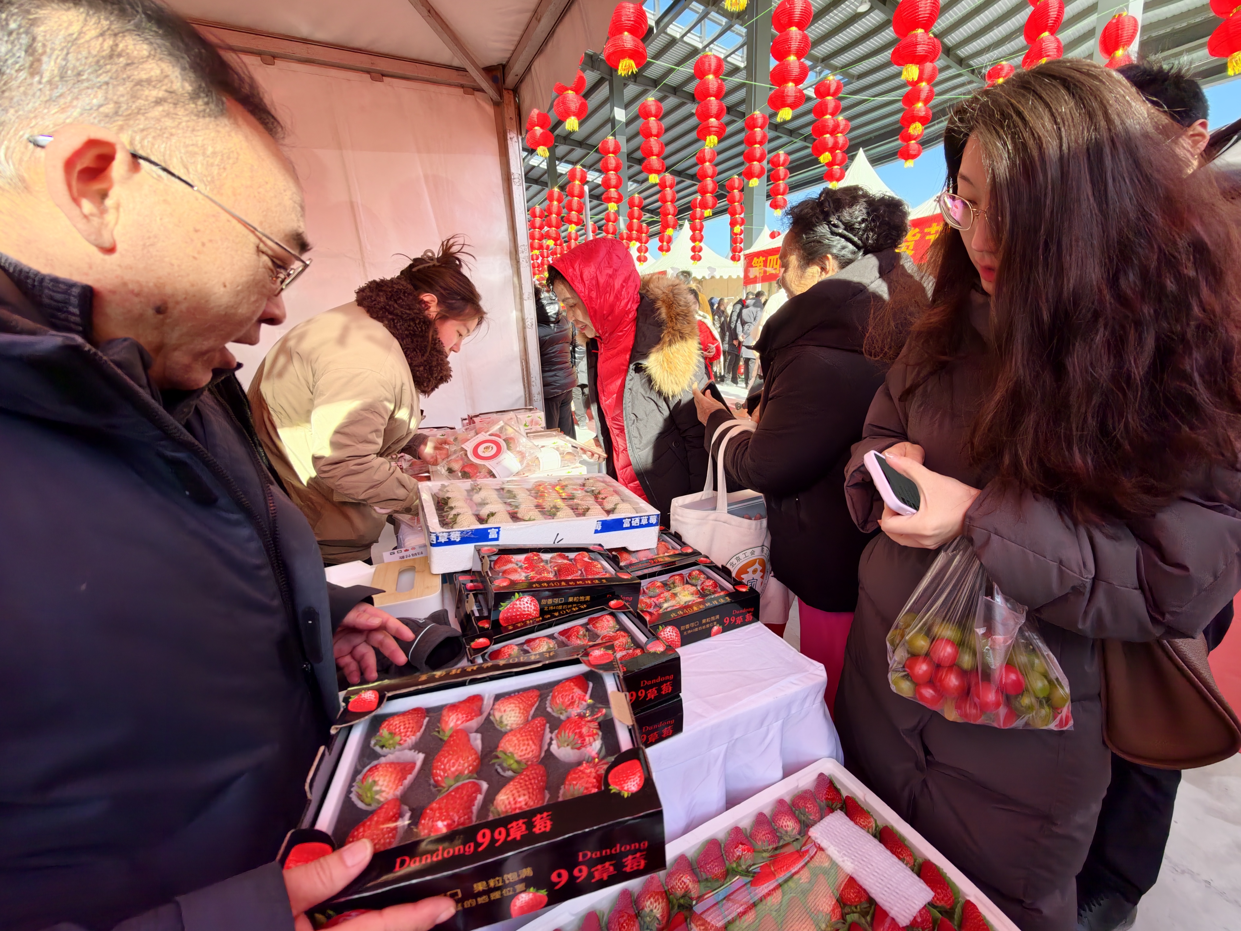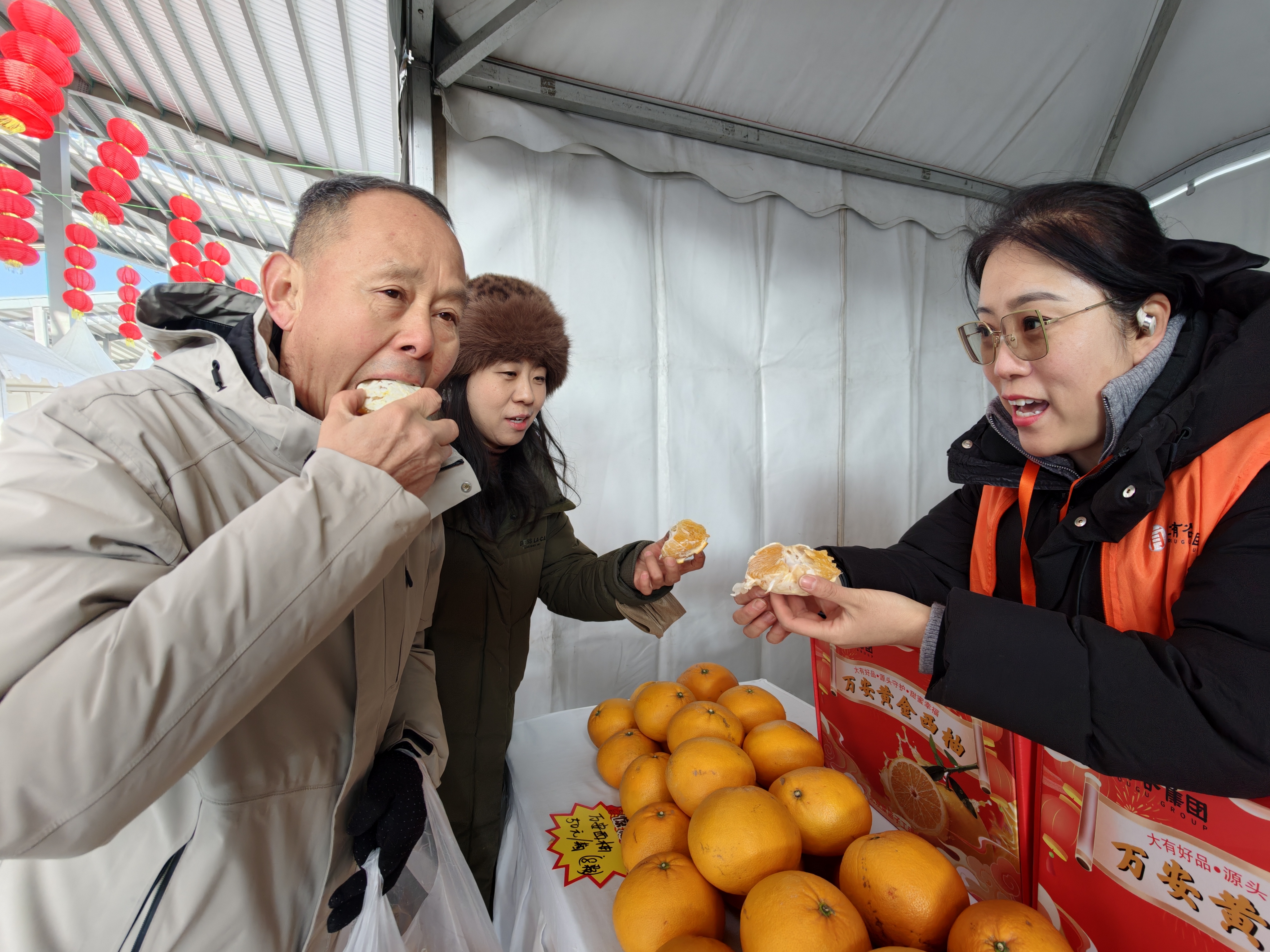 年货节的主会场设在市场果品示范大棚A3厅,各分会场则延伸至专业交易区、中央批发市场、社区便民店乃至雄安新区央企驻地,形成一张覆盖广泛的服务网络。市民批量采购或就近选购,都能便捷实现,“年货送到家门口”从口号落地为现实。