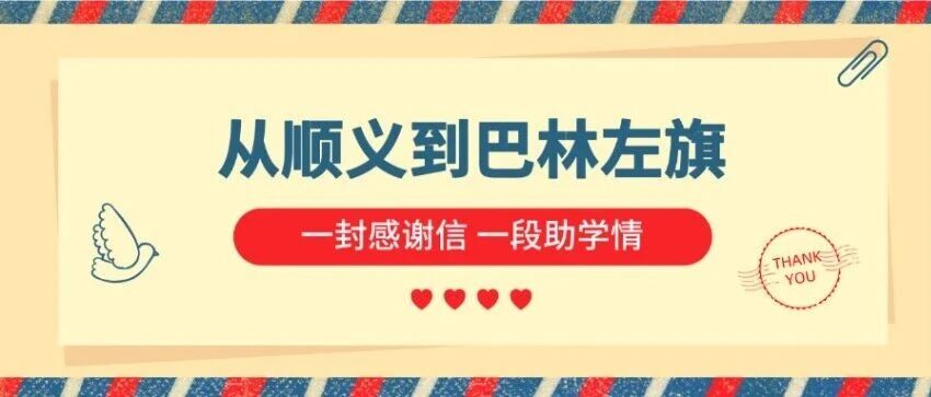 近日,一封来自内蒙古自治区赤峰市巴林左旗杨家营子小学的感谢信,送到了北京顺义科技创新集团有限公司职工李昊霖手中。这封信不仅表达了对李昊霖等23名爱心人士善举的诚挚谢意,更映照出一段从顺义到巴林左旗的助学暖心事。