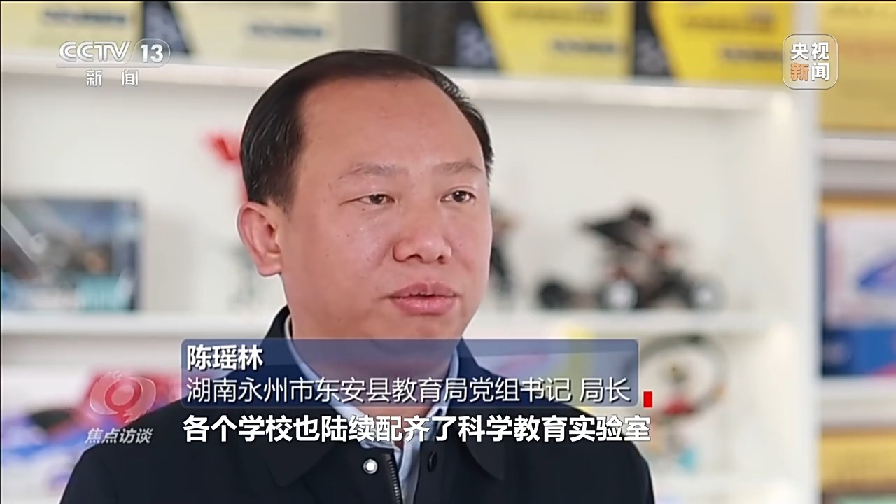 湖南永州市东安县教育局党组书记、局长 陈瑶林:我们持续加大投入,县里面每年都预算安排了600万元,作为科技教育专项经费。各个学校也陆续配齐了科学教育实验室和科学教育的设施设备、教学器材,现在各个学校都成立了无人机、机器人、航海模型、3D打印社团组织。