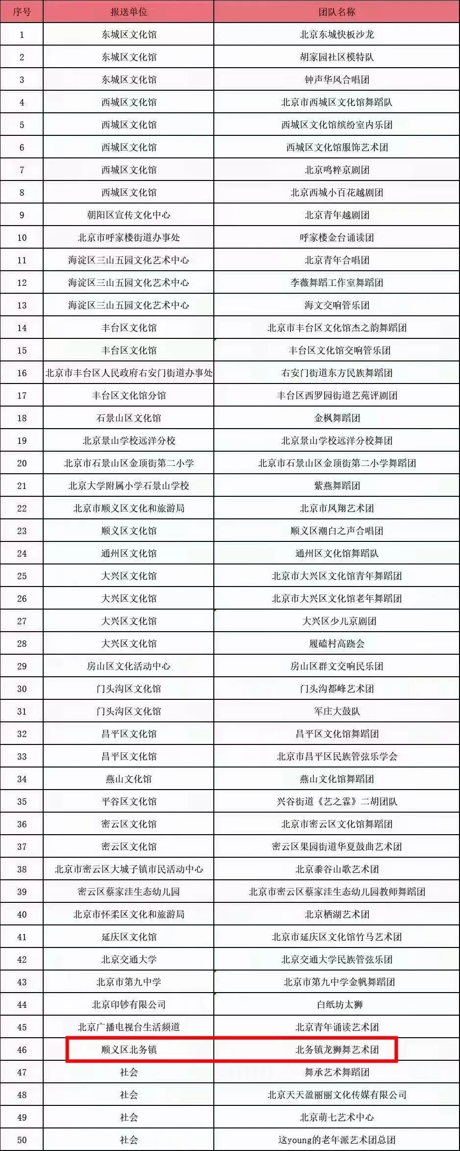 优秀群众文艺团队名单