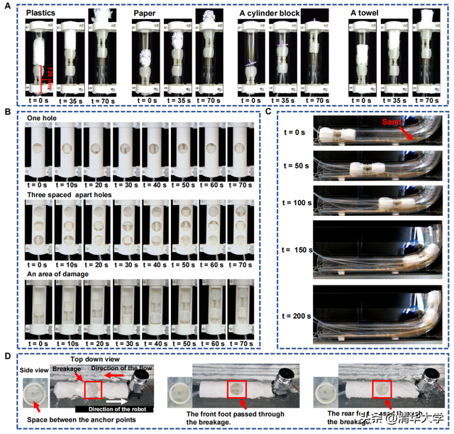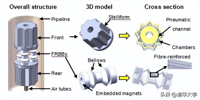 管道作为能源运输与城市运维的核心基础设施,其隐蔽性、复杂性给检测维护带来巨大挑战。传统刚性管道机器人结构复杂、控制难度大,在小管径、破损管道或动态水流等复杂工况下适应性受限;现有软体机器人虽具备灵活性优势,但普遍存在流阻大、负载能力弱、难以应对真实管道故障等问题。