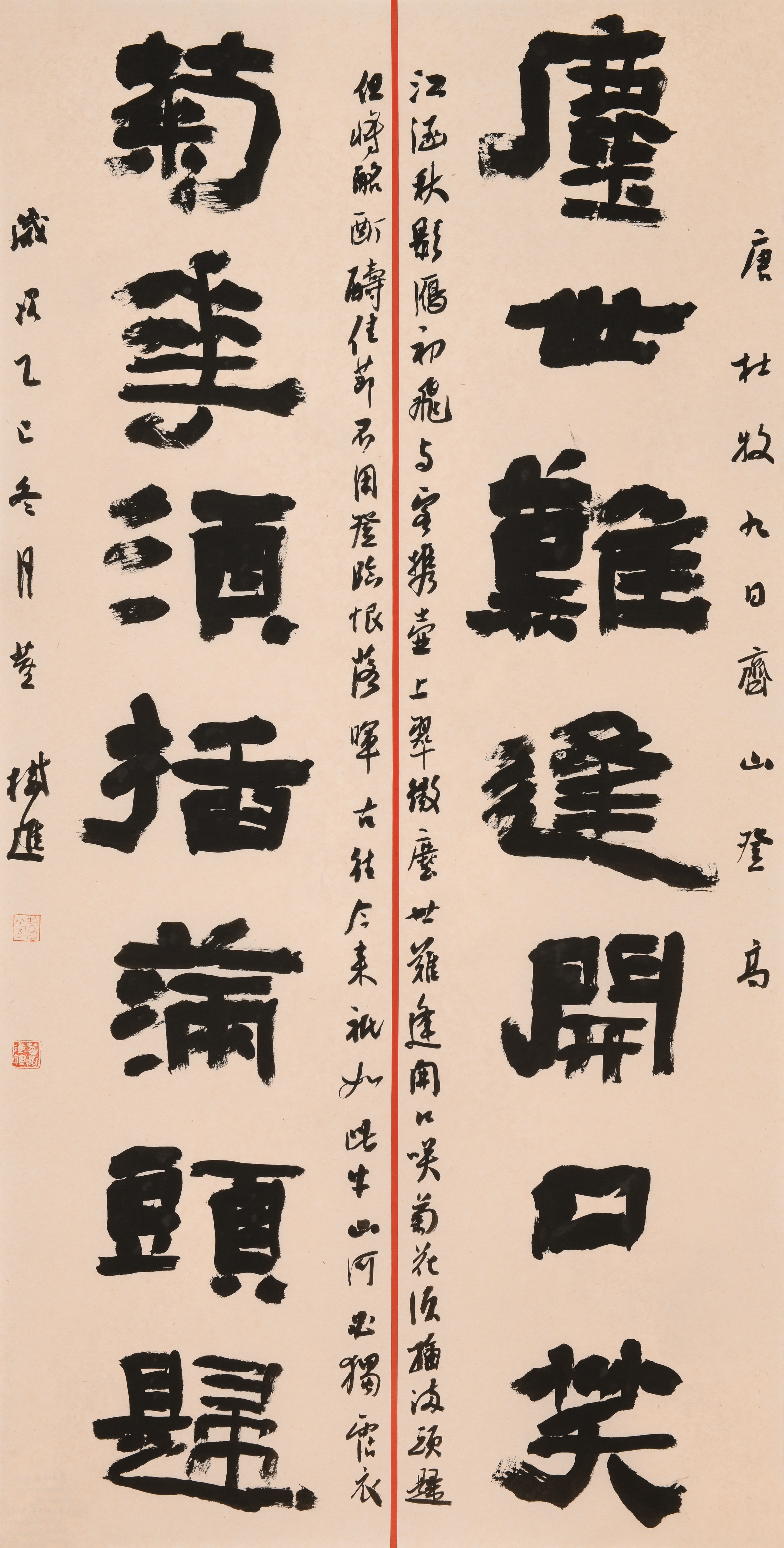 隶书 董树进 65岁 《尘世菊花》对联