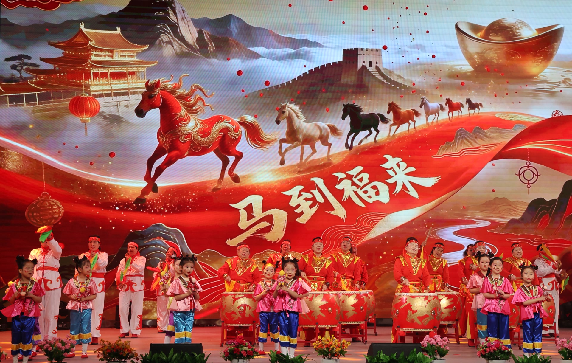 表演节目有传统的鼓舞、歌伴舞、戏曲联唱,也有充满时代感的激光秀、机器人表演。
