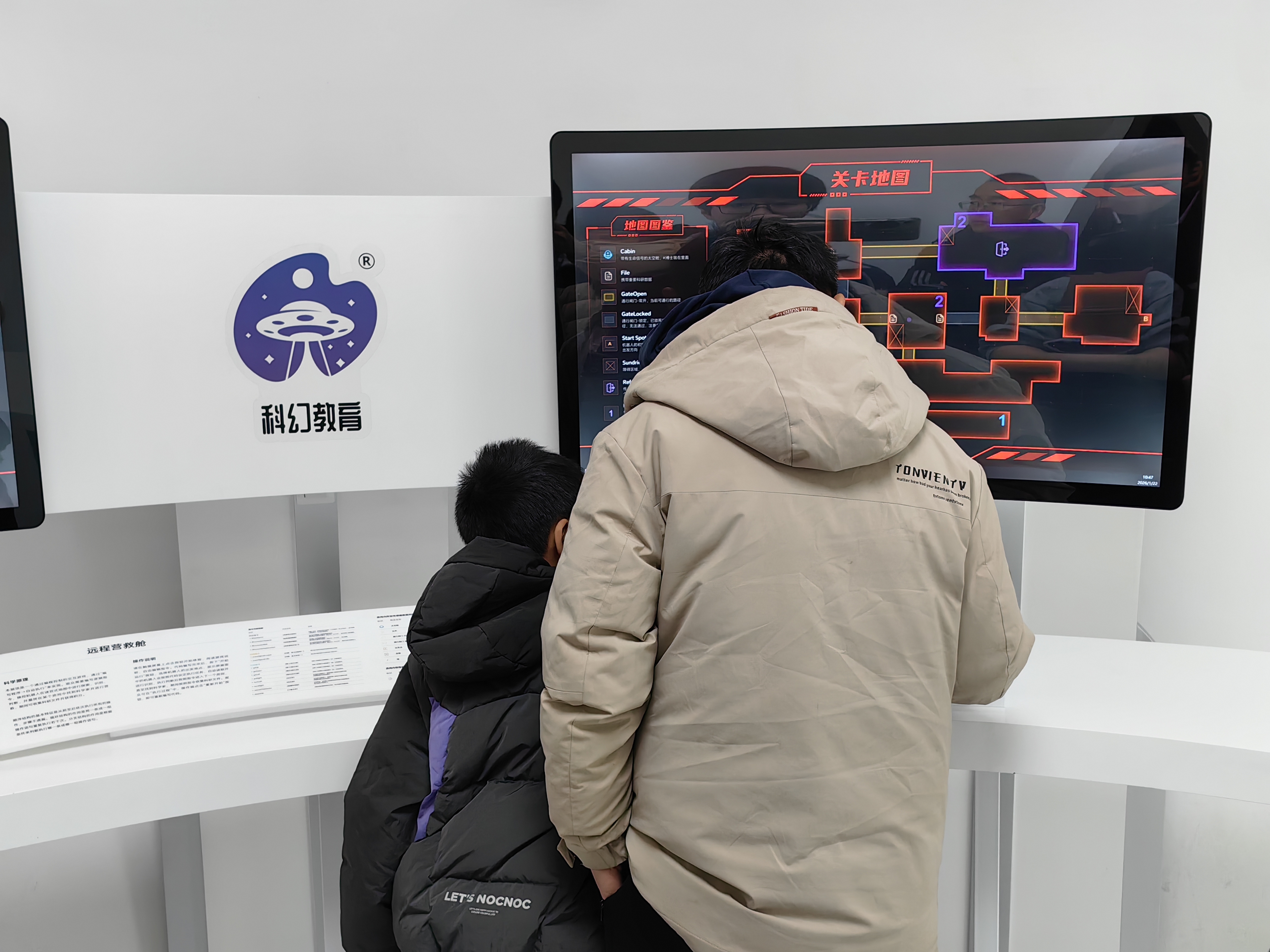 寻找“科学家”线索是互动板块热度很高的一款。小观众在电脑中挑选不同的指令模块,指挥机器人在迷宫式地图中展开探索,收集科研文件。一位科技辅导员说,展品运用了模块化编程的思路,观众需要通过编写逻辑指令完成任务,顺序结构、分支结构等编程知识渗透其中,实现了“玩中学”。有些小观众还会自己增加难度,不断尝试新方法解救“科学家”。比如一位四年级的小学生就用了1个多小时找到了3种方法。