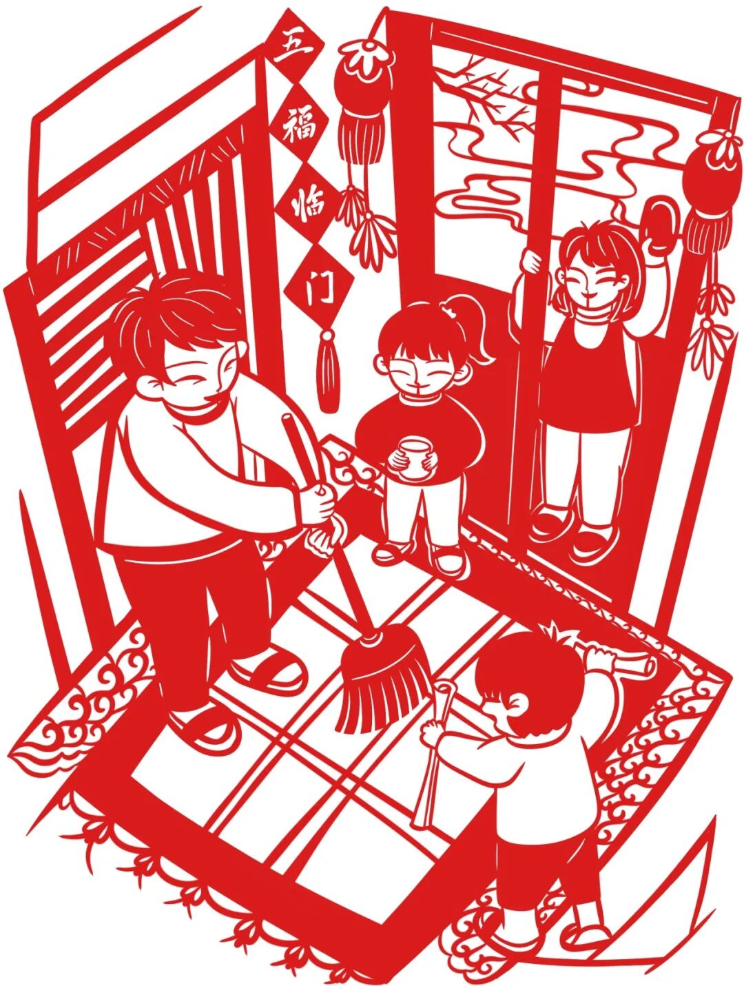 更有意思的,是那些从报纸上“走”下来的剪纸——扫尘、祭祖、守岁……在一刀一剪中,变得可亲可触。