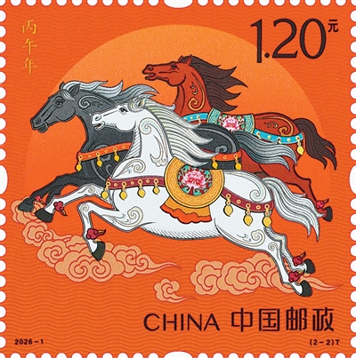 2026年1月5日,中国邮政发行《丙午年》特种邮票一套两枚,此为第二枚“万骏臻福”。