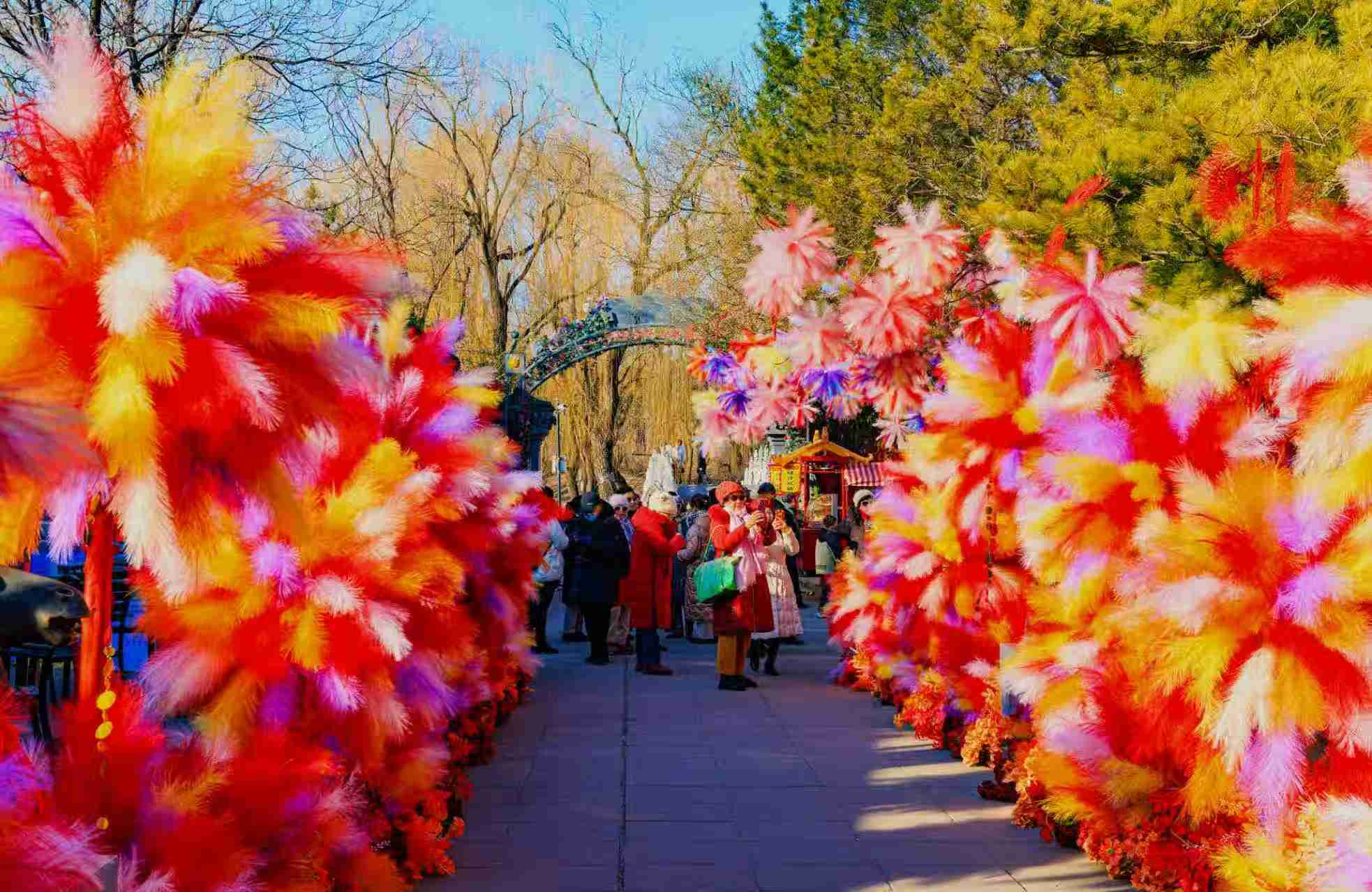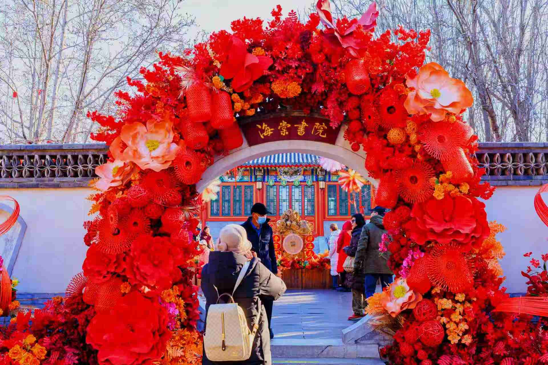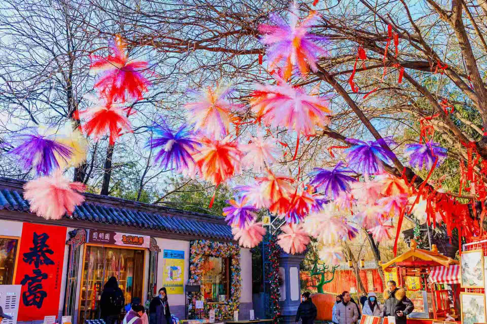春节前夕,圆明园海棠书院在园内布置了毛绒烟花,色彩缤纷,如云似霞,年味瞬间拉满。