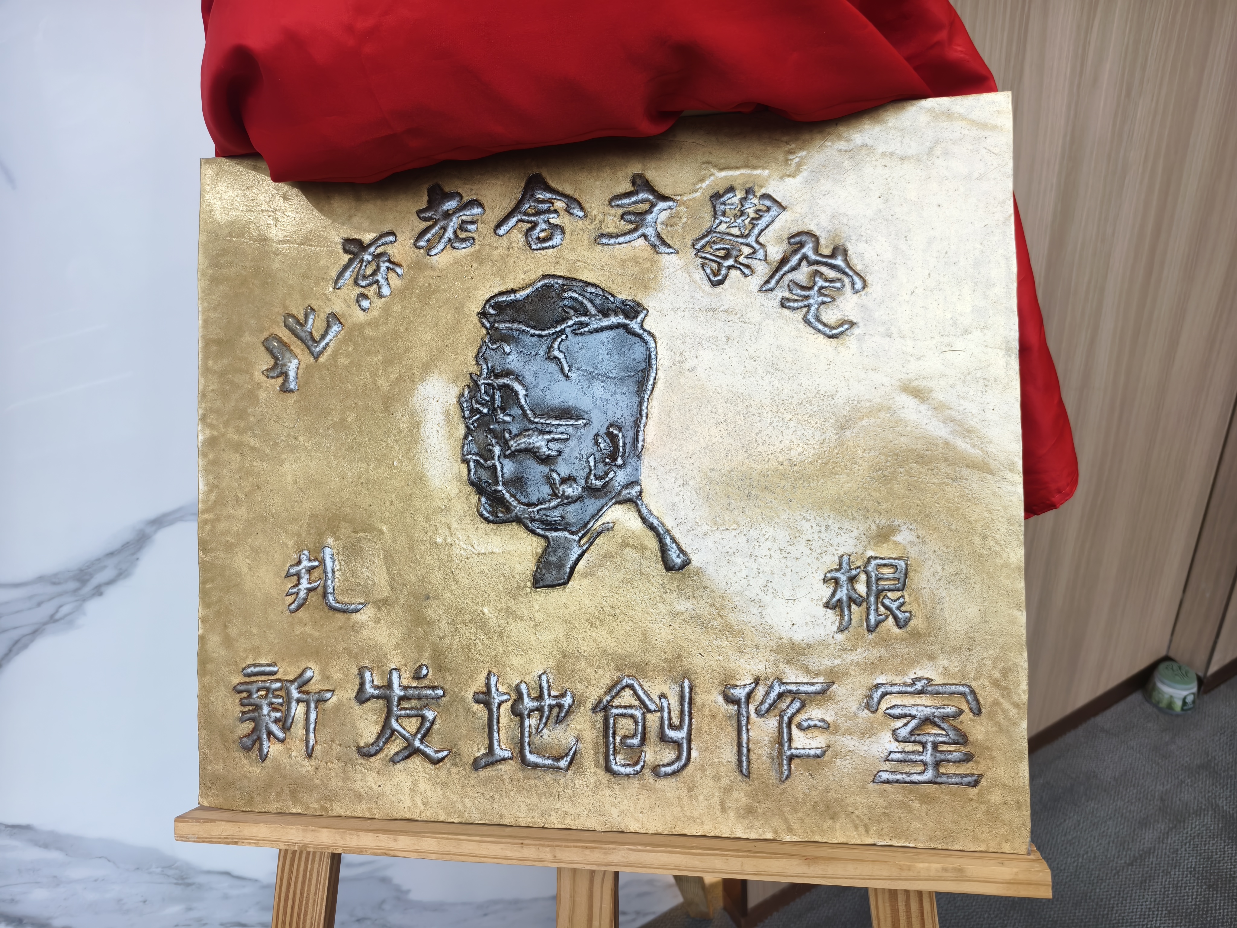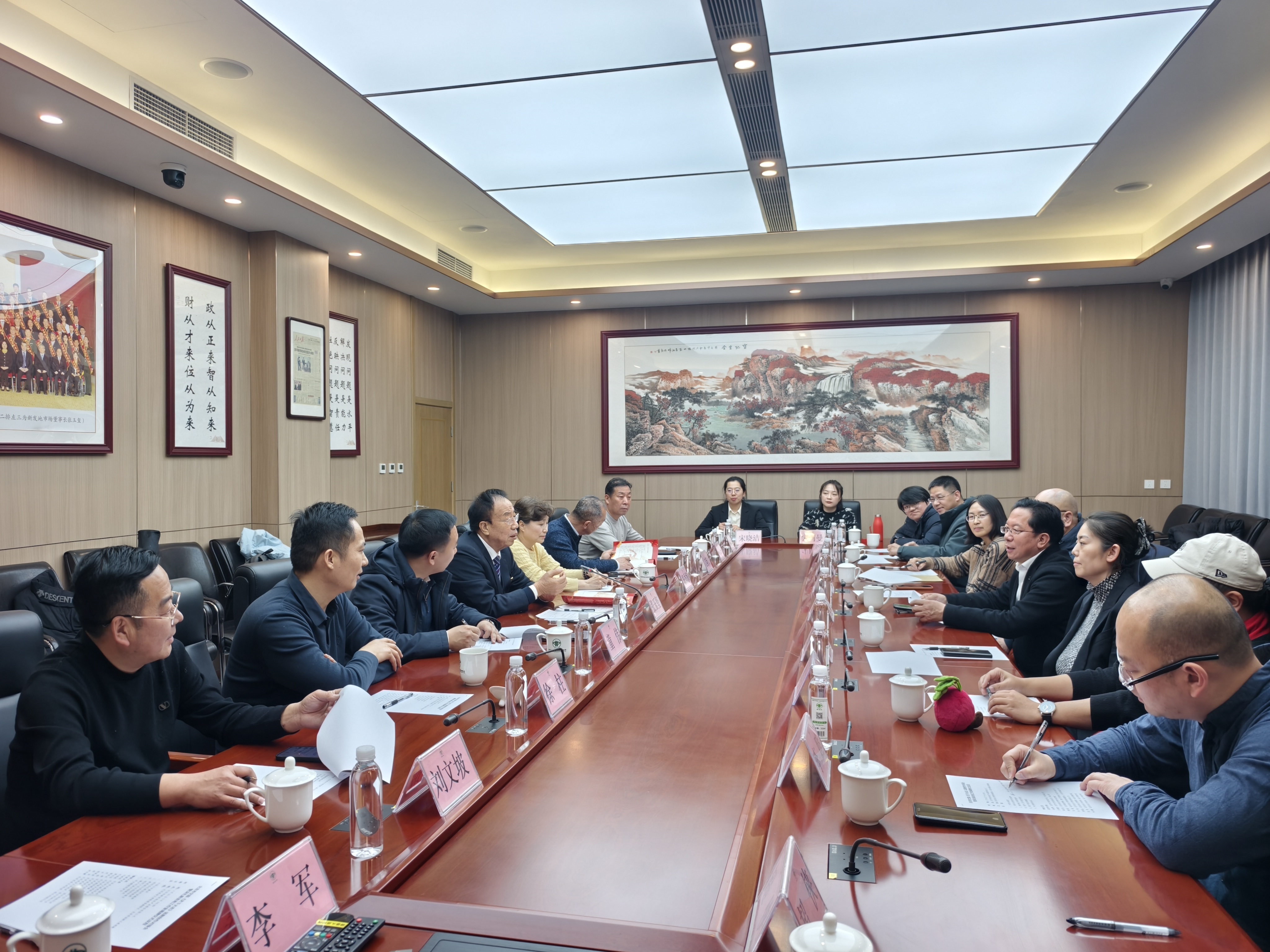 市文联党组书记、常务副主席马新明,市文联党组成员、副主席白靖毅,北京老舍文学院常务副院长、北京作协副主席周敏,北京老舍文学院专业作家龚应恬,北京剧协理事、新文艺团体工作委员会秘书长傅若岩及4位老舍文学院作家观摩演出后,与新发地农产品批发市场董事长张玉玺以及市场众多单品“大王”一同为北京市文联老舍文学院扎根新发地创作室揭牌,并启动《天下大农》舞台剧创作工作。