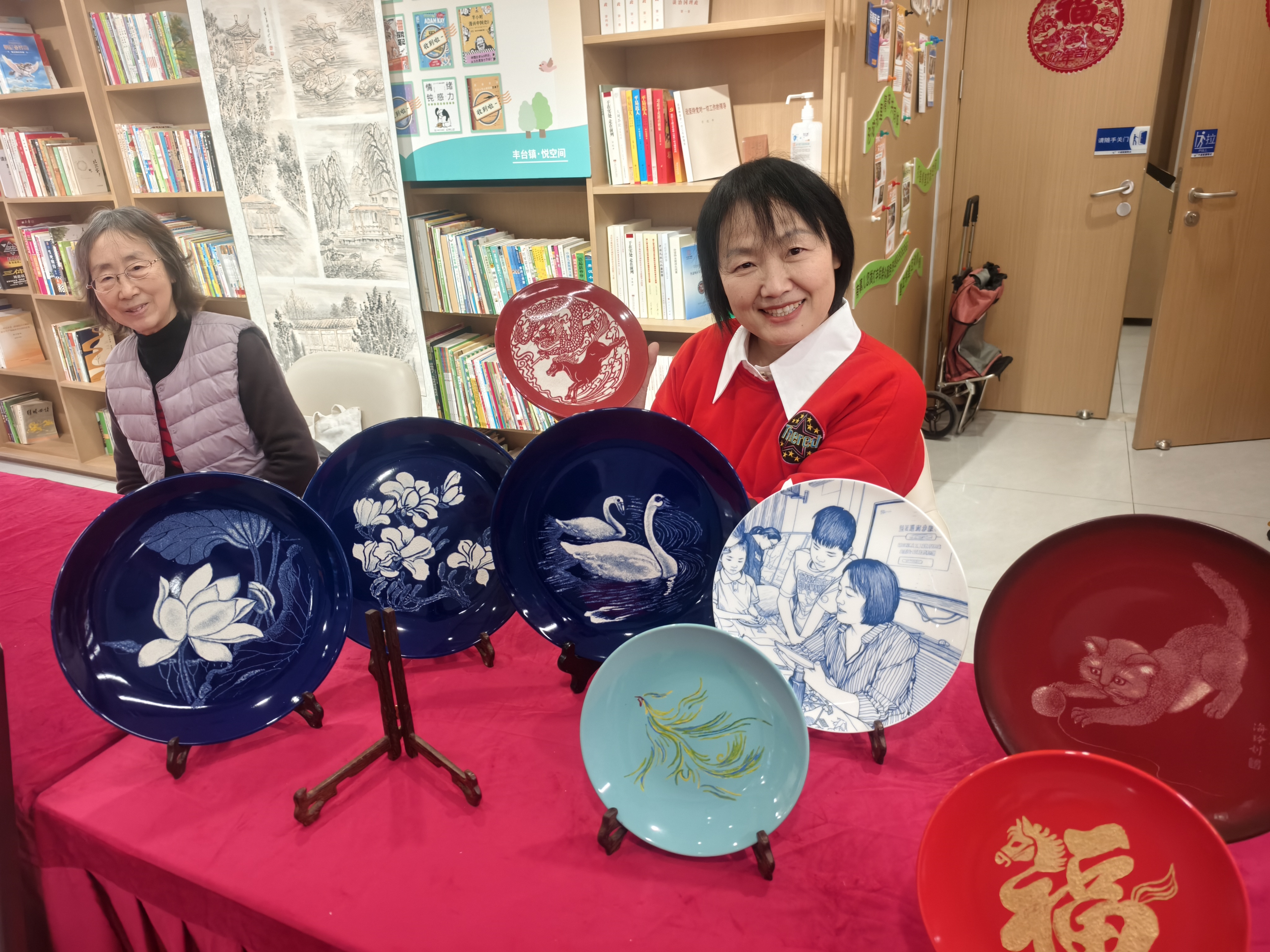 在瓷盘上能刻出画来、用画笔将石头变成工艺品、以宋锦为原料制作出精致的饰品……社区里可谓是藏龙卧虎!