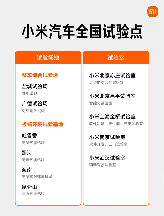 小米汽车在北京、上海、南京、武汉4城,规划了150多个试验室。