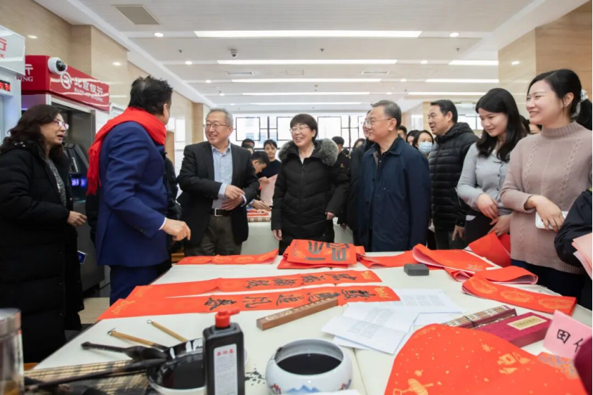 活动现场气氛热烈、其乐融融,干部职工们或围立案前观摩创作,或与书法家们一起挥墨交流,或忙着晾晒和整理自己心仪的春联,不时为笔走龙蛇的精湛技艺点赞!现场一片片红彤彤的对联“福”字晒场、一张张洋溢着幸福笑容的脸庞,构成一幅同心迎春祈福的温情画卷。