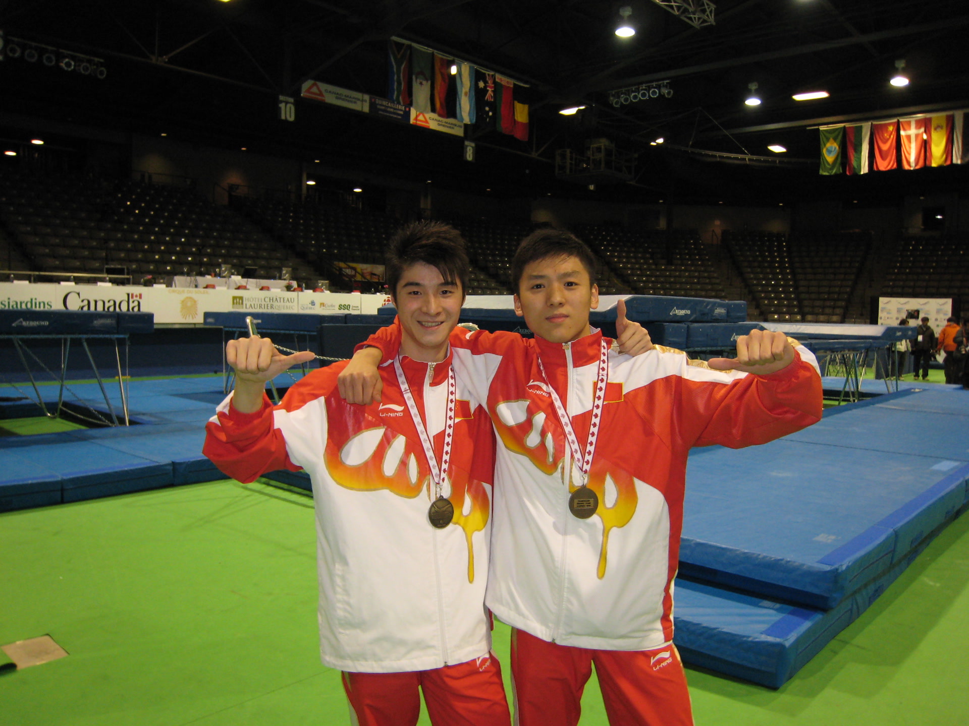 体操与蹦床在技术上有很多相通之处,蹦床是体操队的辅助训练器材。董栋最初练体操时就喜欢在训练后与同龄的小伙伴一起在蹦床上跳几下,“叫都叫不走”。