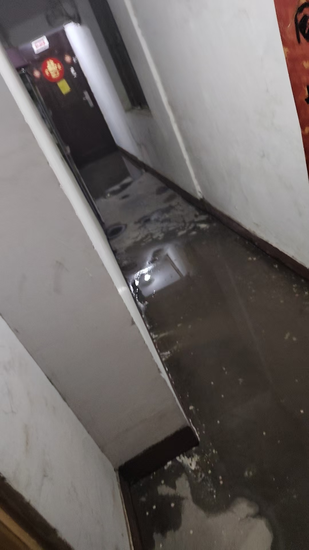电梯门打开的瞬间,王兰伟下意识顿了一下:楼道里的地面亮得反光。“不对,地上怎么这么多水?”他停下脚步确认,发现积水已没过鞋底,且还在源源不断地从居民家中的门缝里涌出。