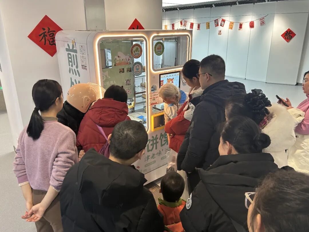 不远处的科技体验区更是热度不减,无人机试飞环节让市民近距离感受科技魅力,而AI煎饼果子机前早已排起了长队,机器根据市民口味偏好精准调配食材,几分钟就做出一份香气扑鼻的煎饼果子,既保留了传统风味,又增添了科技趣味。
