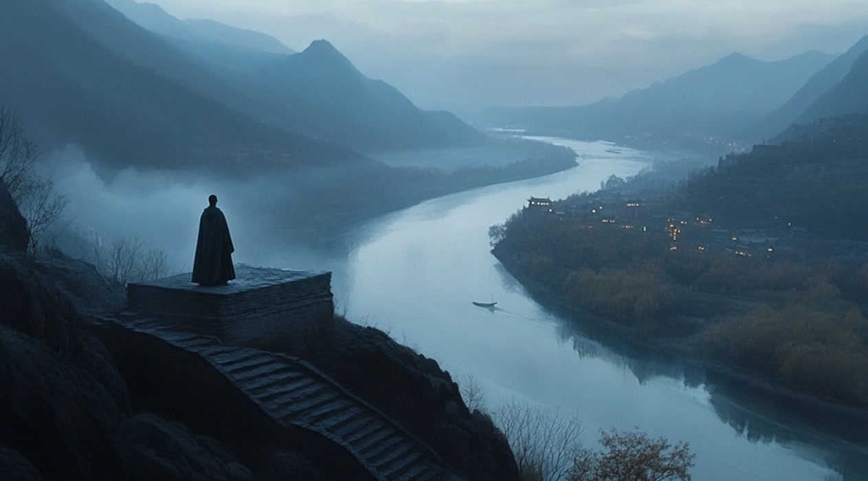 第四,句法连贯适配,句数严格对应原诗。采用整句连贯表达,无华兹生将原诗一句拆为两行的碎片化处理,四句英文严格对应原诗四句七言绝句,句式长短相近、逻辑顺畅,读来节奏舒缓,贴合送别诗的悠然怅惘;同时避免了通俗译版过于直白的陈述句,将“孤帆远影碧空尽”译为The lonely sail is a distant shadow lost in blue void,通过定语后置实现意象的自然衔接,兼具中文的炼字特点与英文的表达习惯。此外,未刻意强调第一人称,将视角自然融入句式,仅以“Only”作为情感落点,还原了原诗“言有尽而意无穷”的含蓄美。