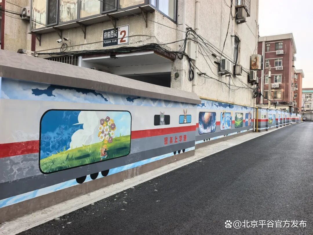彩绘设计以飞驰的高铁列车为主要视觉元素,寓意“成长列车”,象征着孩子们在求学与成长路途上的不断前行与探索。“我喜欢那个大大的铅笔!还有会飞的小猫!我每天都要和它们‘打招呼’。”如今,每天清晨与傍晚,途经此处的孩子们总会情不自禁地放慢脚步,原本平淡的通行路段,转变为一段充满发现与美感的沉浸体验之旅。“之前墙面光秃秃的,还有些破损,现在变得这么漂亮又有意义,孩子上学放学都更开心了。”一位陪同孩子的家长坦言,墙体改造不仅改善了环境,更传递出暖心关怀。
