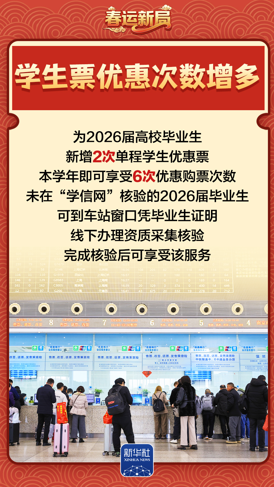 2026年春运大幕今日开启。预计全国铁路客运量将达到5.4亿人次。这次春运将实施新的列车运行图,增开和优化旅客列车560余列。各地铁路部门纷纷推出特色服务,“铁”定让你的回家之路更加温暖。跟随海报,一起来了解下。