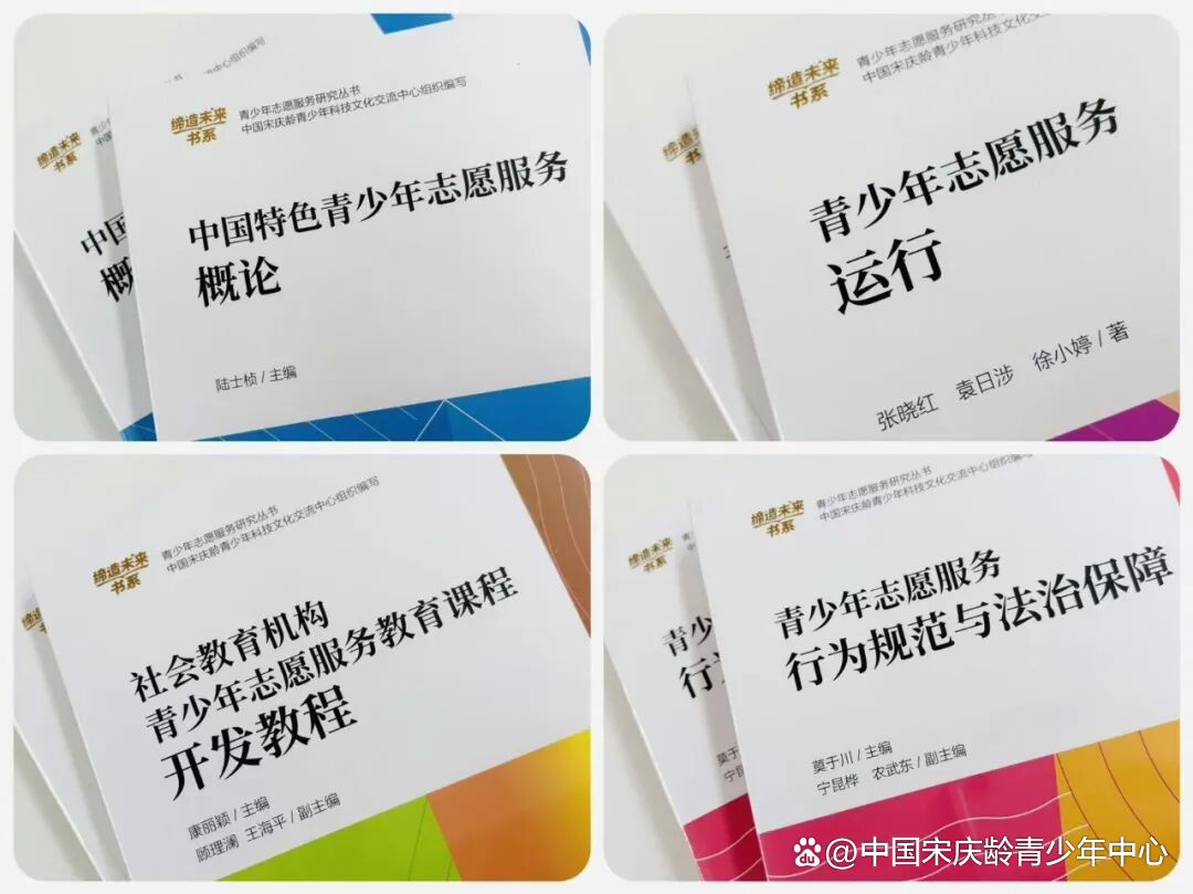 该丛书由中国宋庆龄青少年科技文化交流中心组织编写、中国少年儿童新闻出版总社出版,包括《中国特色青少年志愿服务概论》《青少年志愿服务运行》《社会教育机构青少年志愿服务教育课程开发教程》《青少年志愿服务行为规范与法治保障》四册图书。丛书立足中国特色志愿服务发展实践,系统梳理青少年志愿服务的理论体系、运行机制、课程开发与法治保障等核心内容,具有较强的理论价值与实践指导意义。