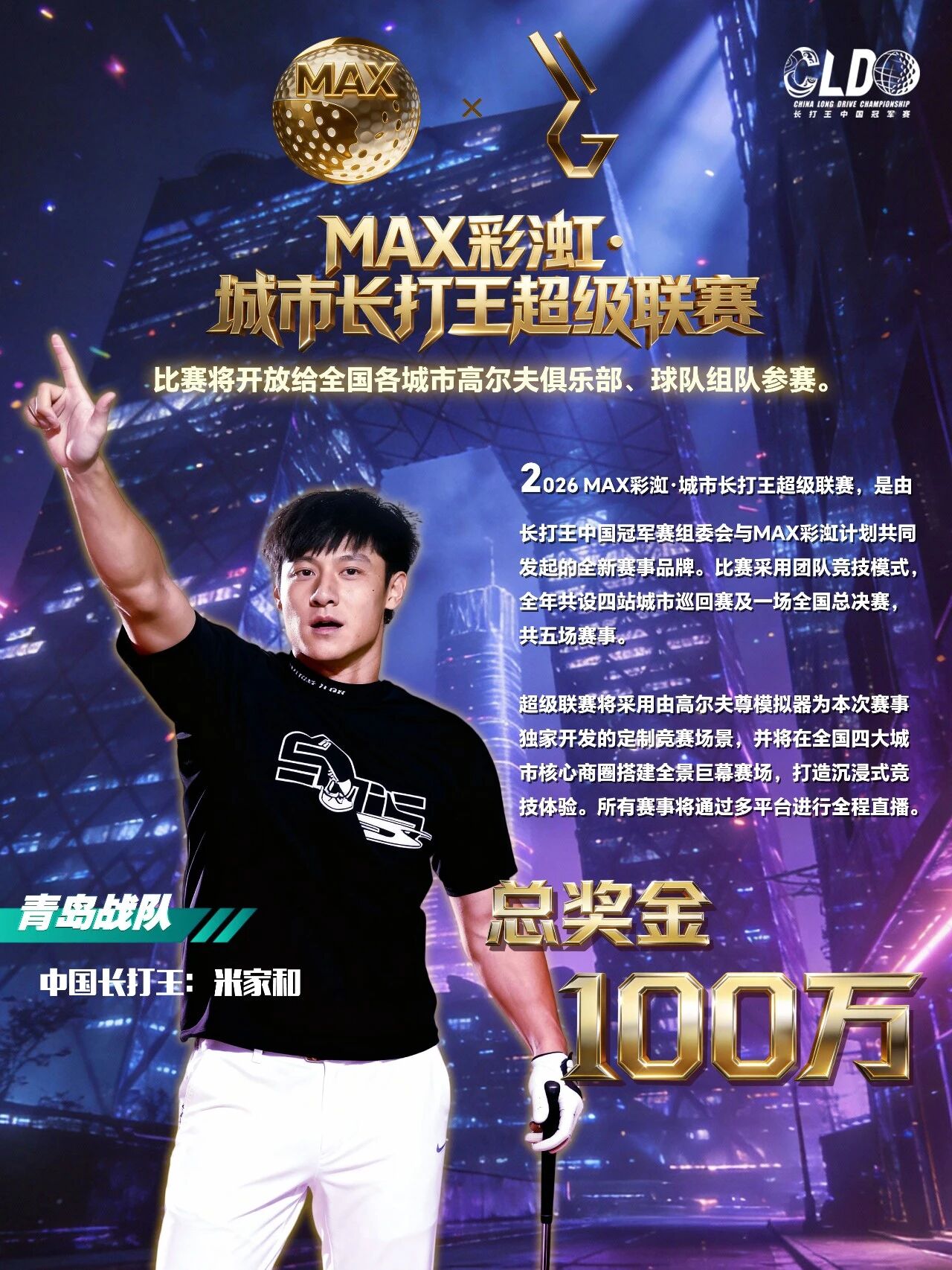 2026年2月1日,长打王中国冠军赛组委会正式宣布推出全新赛事-2026 MAX彩渱·城市长打王超级联赛。这标志着中国长打运动正式从个人竞技迈入团队荣耀的新阶段,推动高尔夫运动多元化与大众化发展。