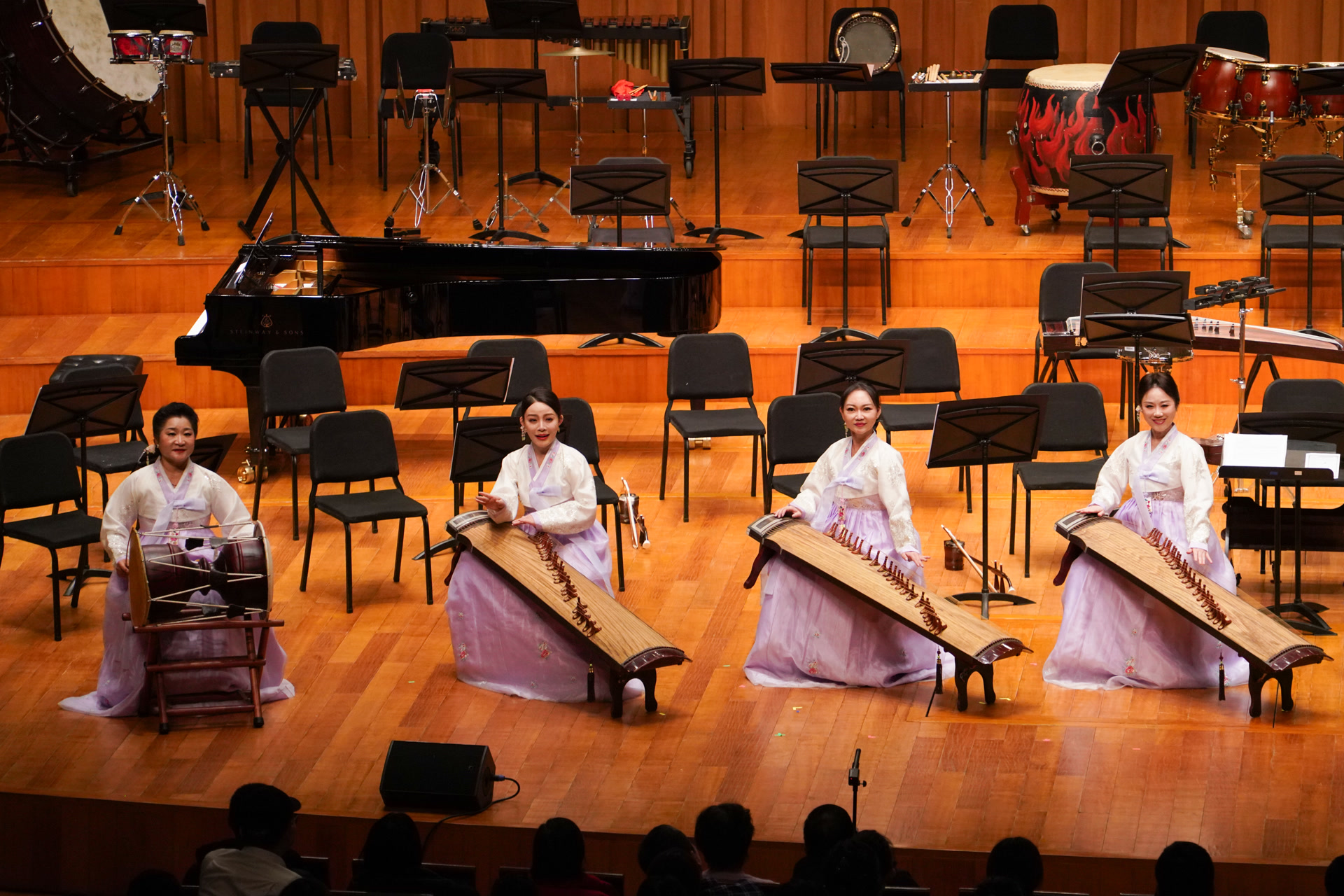 本场音乐会特邀中国音乐学院教授、博士生导师张天彤担任导赏。她以丰富的专业知识,为现场观众带来民族音乐知识讲解。在她的讲解中,这场演出以多民族非遗音乐为核心,把云南弥渡民歌、壮族三声部民歌、伽倻琴艺术等国家级非遗项目串联起来,让流传千年的民族曲调在国家级殿堂里绽放光彩。