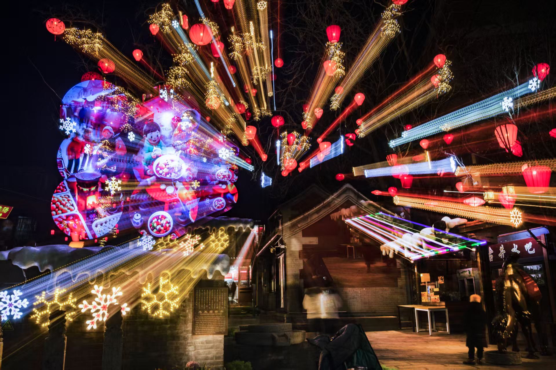 年味渐浓,华灯初上!石景山迎新春夜间亮化美景上新,古道流光、商街焕彩,共同点亮京西新春夜!驼铃古道模式口的“瑞马迎春”“摩登雪夜”等光影景致,将千年古道的历史文脉与现代灯光艺术深度融合,一步一景皆是古韵新章;古城南路步行街180米“星空天幕”再度重现,繁星点点的梦幻光影铺满商街,为街区添上浪漫新春底色。华灯映古街,天幕耀商巷,石景山的新春夜色正焕彩绽放,邀你共赴这场光影之约,邂逅浓浓年味儿~