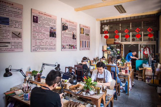 荣宝斋是京城经营文房四宝的百年老店,取“以文会友,荣名为宝”雅意得名。拥有“木版水印”和“装裱修复”两项国家级非物质文化遗产技艺。木版水印中二十世纪七十年代复制的《韩熙载夜宴图》是其技艺的巅峰之作;装裱则是北派装裱——“京裱”最集中的体现,其修复国画技术在国内外堪称一流。
