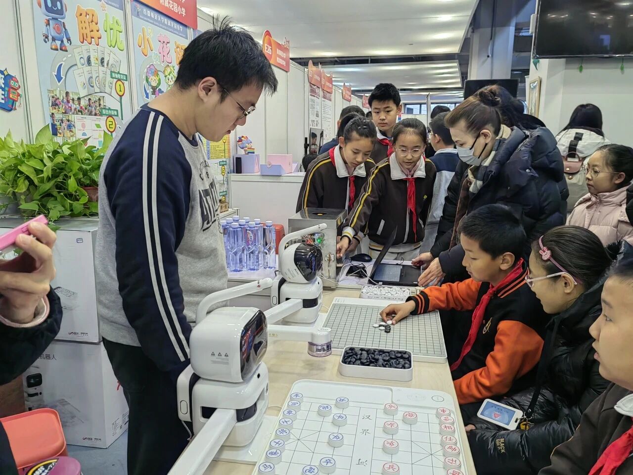 会后,一场内容丰富的“人工智能教育庙会”鸣锣启幕。庙会设立了“高校、科研院所”“创新企业”“师生体验”三大主题展区,100余个互动展位构成了一个微缩版的“海淀AI教育生态圈”。