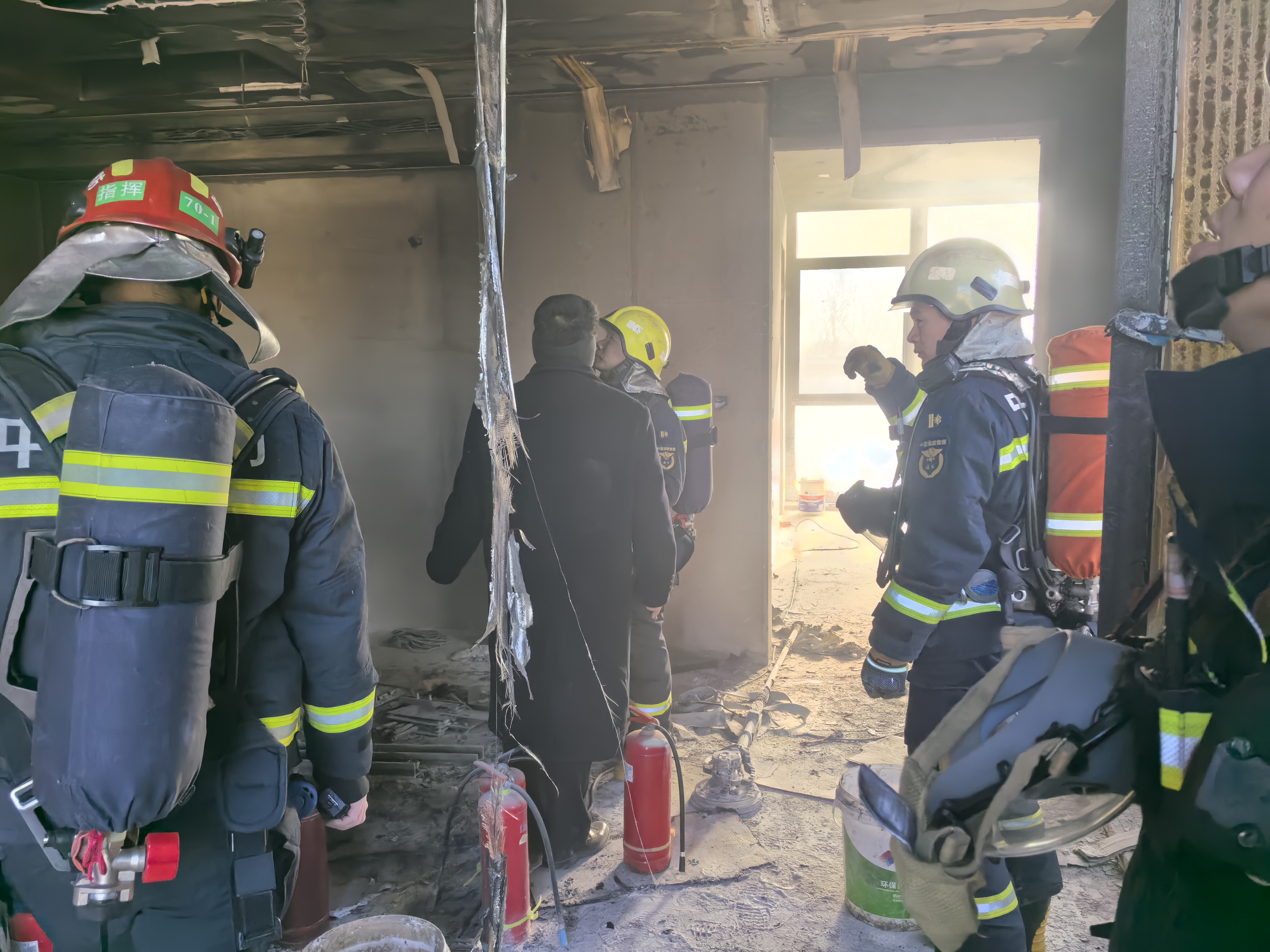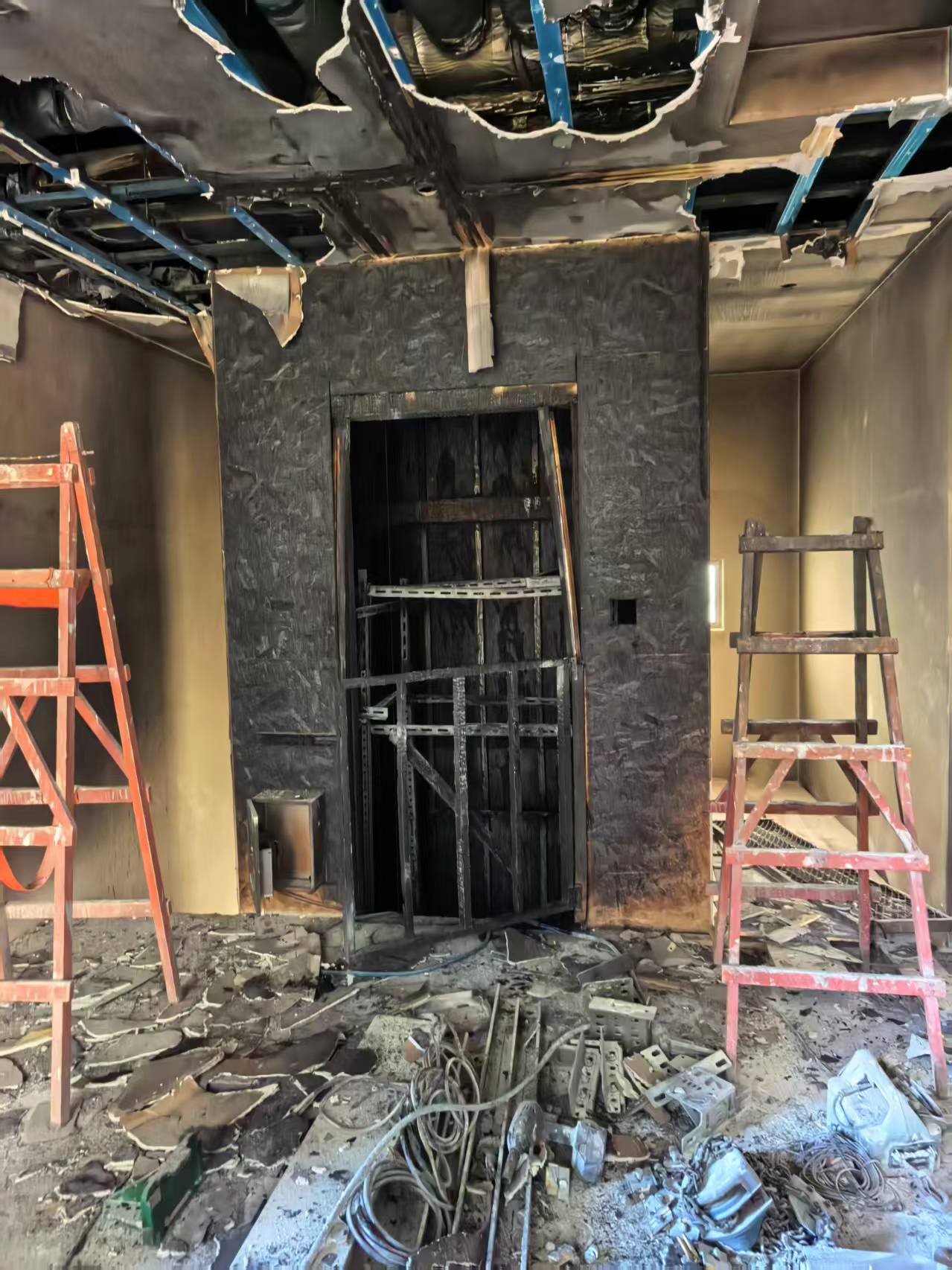 起火部位位于电梯井内,起火原因为电梯安装施工人员进行电焊动火作业时,焊渣掉落引燃电梯井内的可燃物,火沿电梯井迅速向上蔓延。现场工人发现起火冒烟后,立即拨打119电话报警,附近消防救援站接警后迅速赶往现场,同步通知小区物业微型消防站人员先期到场处置,物业微型消防站人员到场后,迅速用灭火器灭火,避免了火灾进一步扩大蔓延。