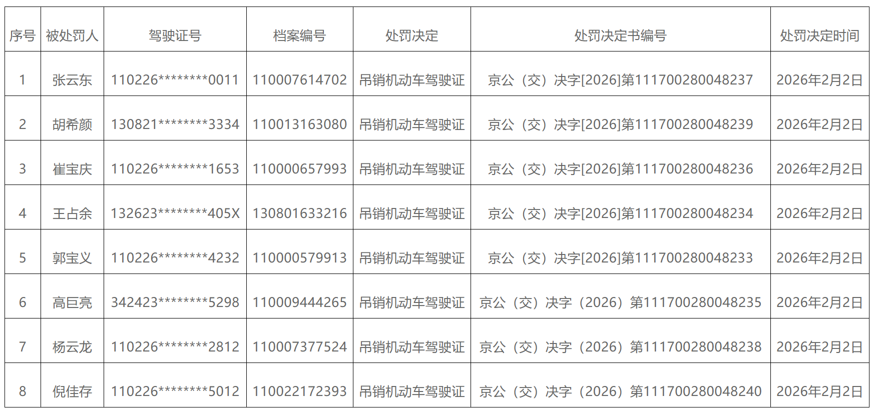 下列机动车驾驶人发生道路交通安全违法行为被本机关依法扣留驾驶证后,超过15日未接受处理,根据《中华人民共和国道路交通安全法》第一百一十条第二款的规定,本机关已依法作出处罚决定,现予公告送达: