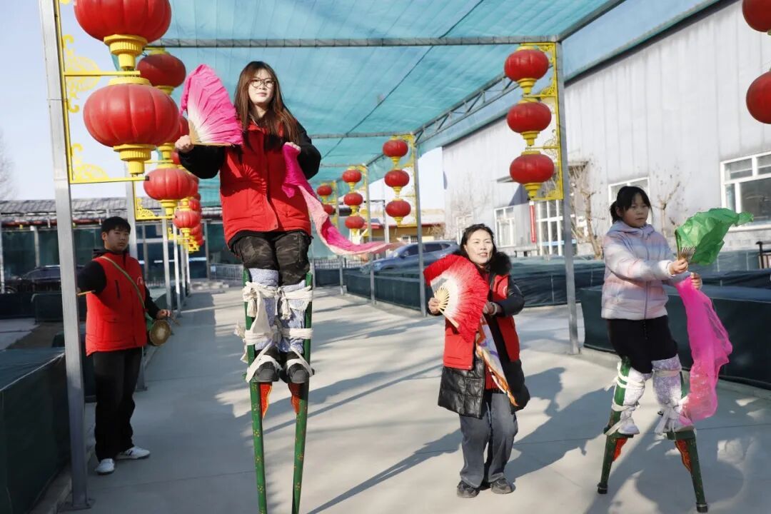 “扇子打直,抖起来。腿要蹲一下,注意平衡……”万一善老会会长付莉正在一遍遍纠正着两个徒弟的动作。徒弟刘宇珊从5岁开始学高跷,两三个月便能走得稳稳当当。“我也摔倒过很多次,很疼,但是我不想放弃,就是想让更多人看见这门技艺,看见坚持的精神。”刘宇珊说。
