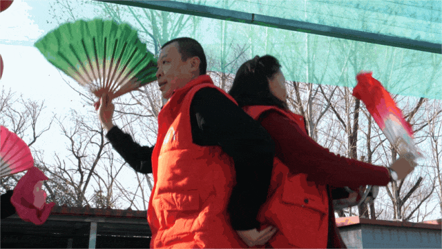 另一边,副会长付金贵正在传授徒弟打腰鼓的技艺。“想要打好腰鼓,不仅要脑子快、手快,还要有协调性,要是协调性不好,打出来的声音就不好听,鼓点必须有轻重缓急。”付金贵说,他已经带了20多个徒弟,其中既有孩子,也有成人,只要有人感兴趣,他就乐于传授。有节奏感的鼓点不断响起,一旁的老艺人兴致也上来了,拿起手锣等乐器加入,随着节奏扭动起来了,现场气氛一时热闹非凡。