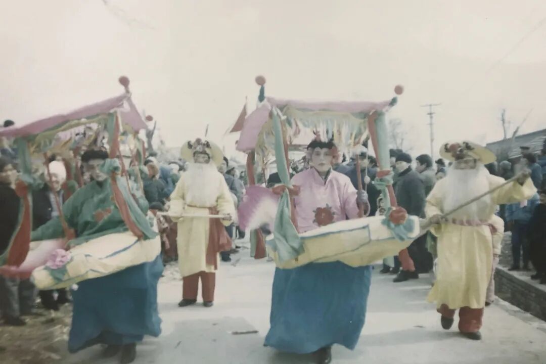 四档花会中,大头和尚度柳翠以其诙谐生动的表演独树一帜。演员头戴夸张僧帽,身披宽大袈裟,以生动传神的肢体语言将民间传说中的诙谐意趣展现得淋漓尽致。他们的表演不仅注重步法身段的精准配合,更在夸张的造型与灵动的演绎中,将传统技艺与喜剧美感完美融合。