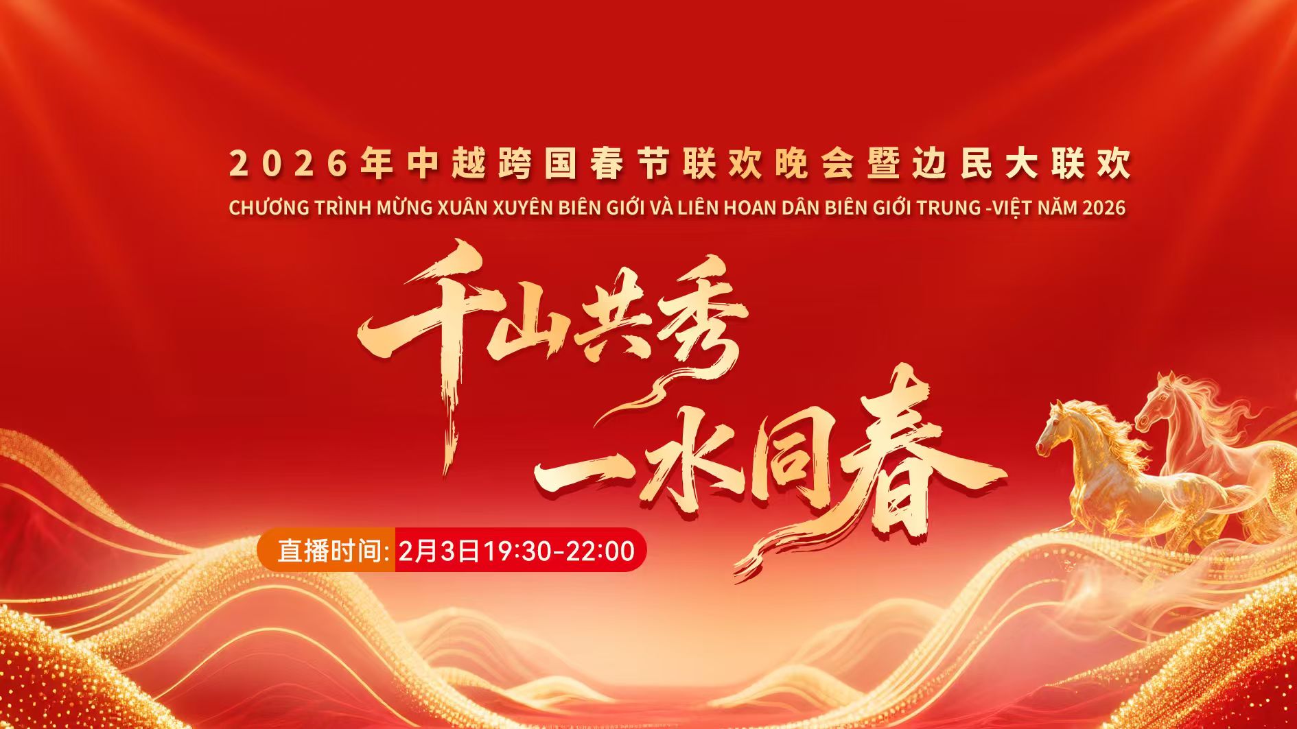 2月3日晚19:30至22:00,中央广播电视总台央视频将联动25家主流媒体,现场直播在红河州河口县举行的2026年中越跨国春节联欢晚会,带您沉浸式体验两国艺术家跨越国界的精彩文化盛宴,感受中越两国人民“同饮一江水、携手共发展”的深情厚谊,共度一个喜庆祥和、心手相连的跨国春夜。