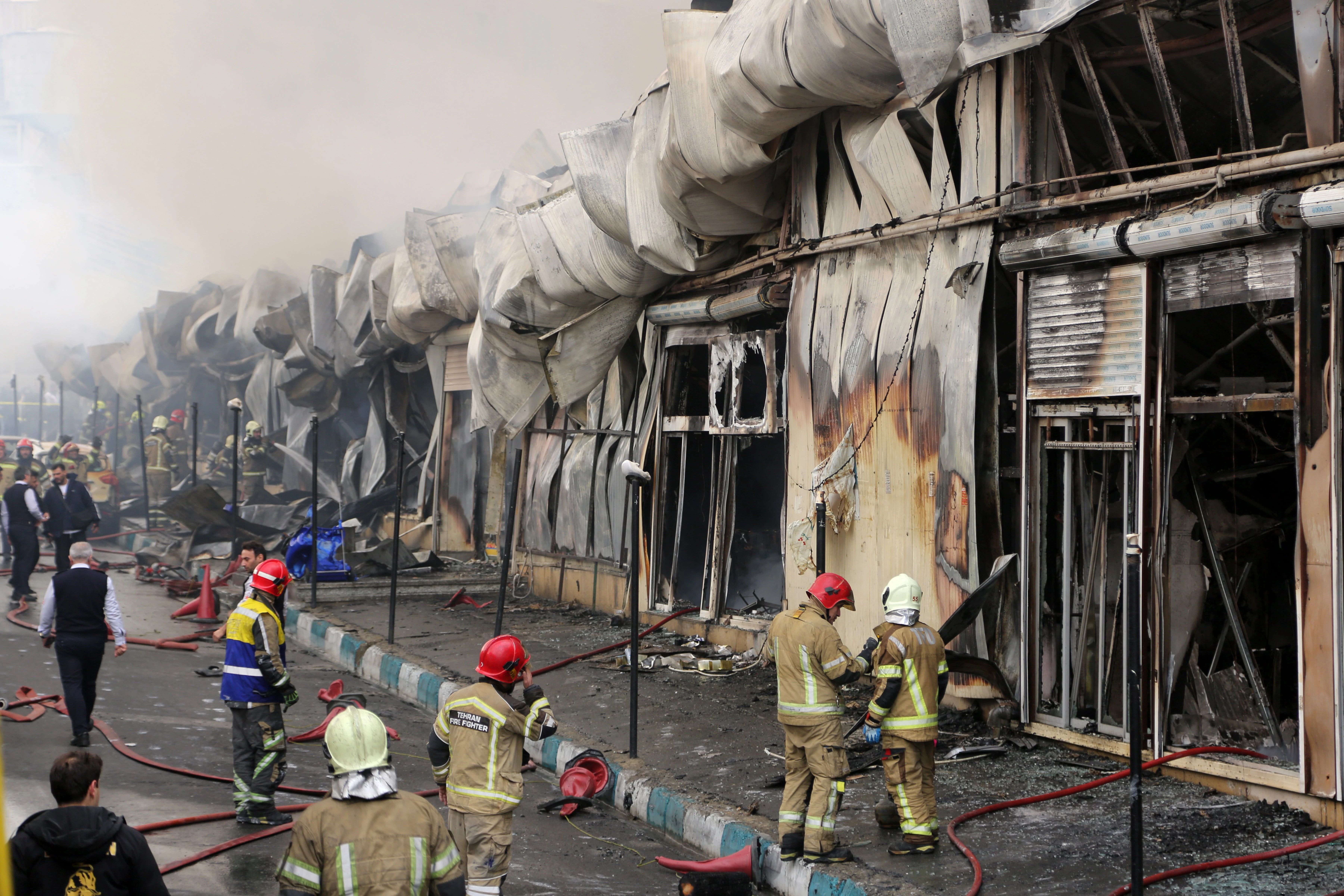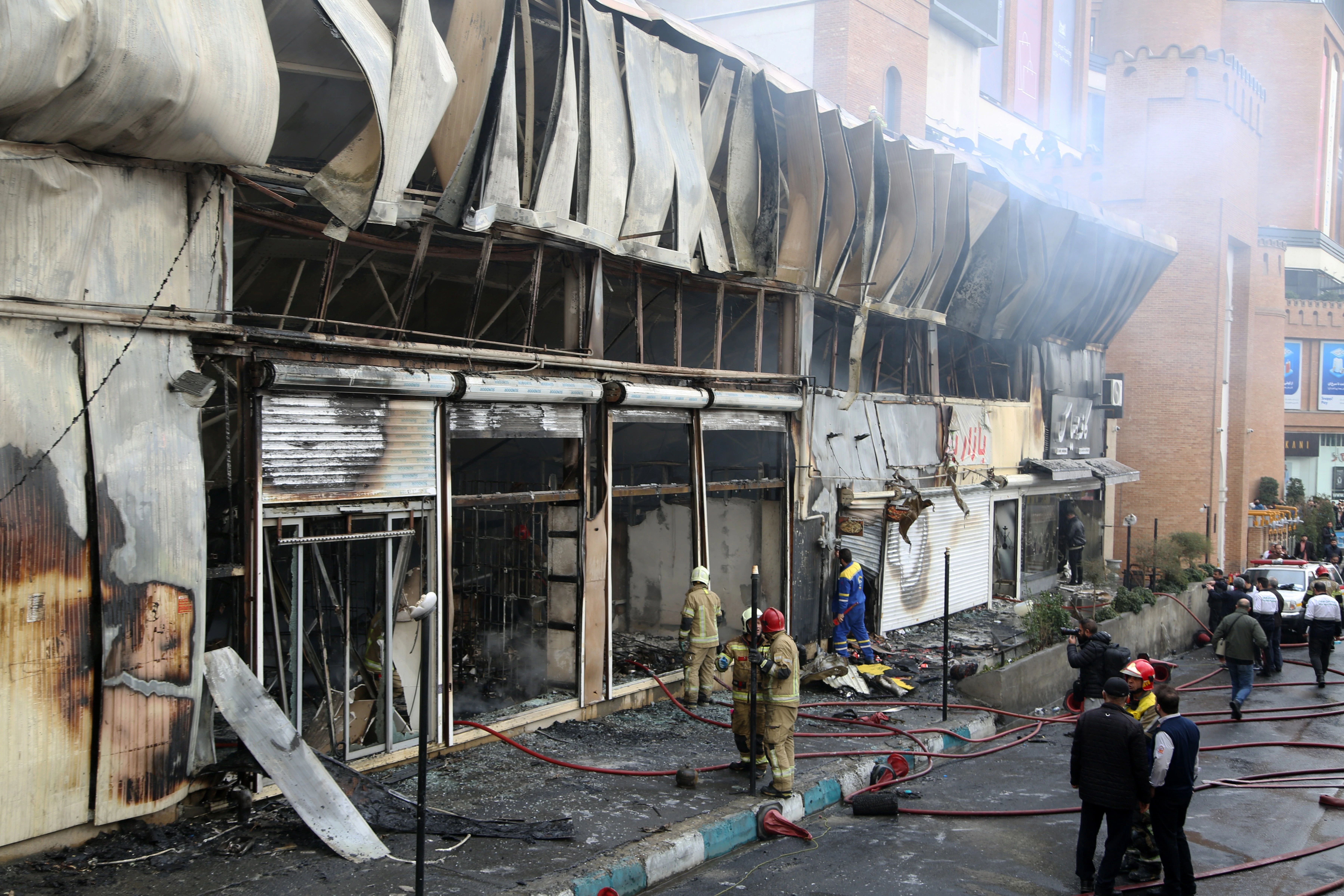 2月3日,在伊朗首都德黑兰,消防员在火灾现场工作。新华社发
