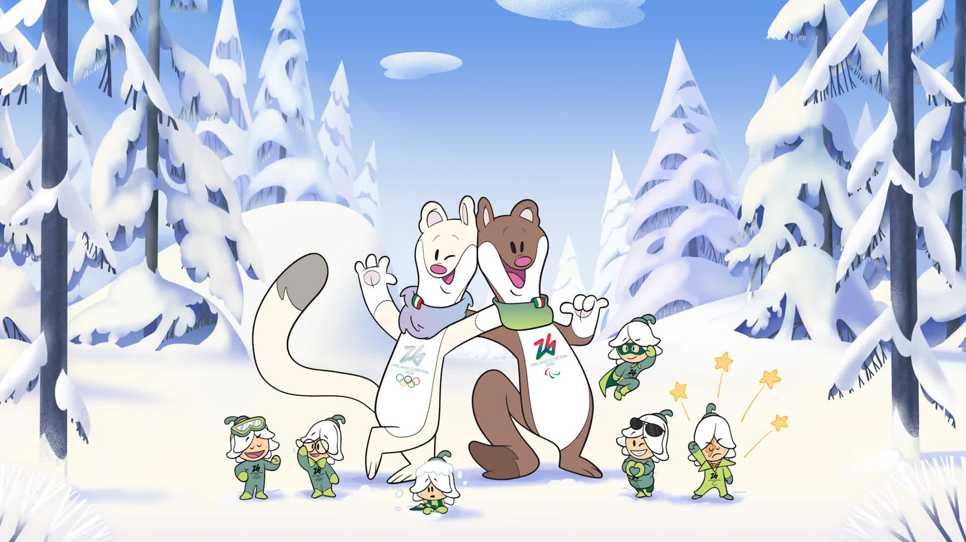 颜色较浅的蒂娜代表2026年米兰·科尔蒂纳冬奥会,而毛色较深的米罗则是冬残奥会的代表形象。他们的名字灵感来自两座主办城市:蒂娜源自科尔蒂纳丹佩佐,米罗则来自米兰。