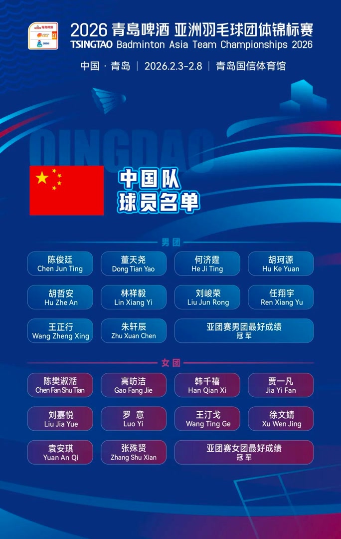 2月3日,2026年亚洲羽毛球团体锦标赛在青岛开幕,此次赛事持续至2月8日。开赛首日,中国女团轮空,中国男团总比分5比0战胜中国澳门队。