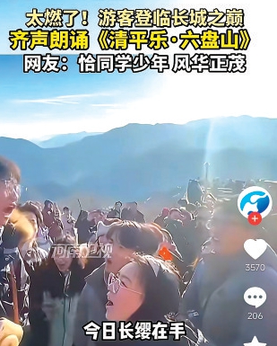 对于这种“效仿”,参与者普遍表示,他们并非冲着流量而来,而是因为身处壮阔风景中,情绪被自然调动,产生了想要吟诵的冲动。