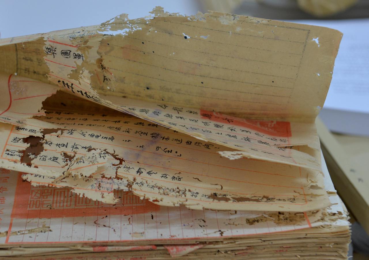 破损严重的龙泉司法档案。受访者供图