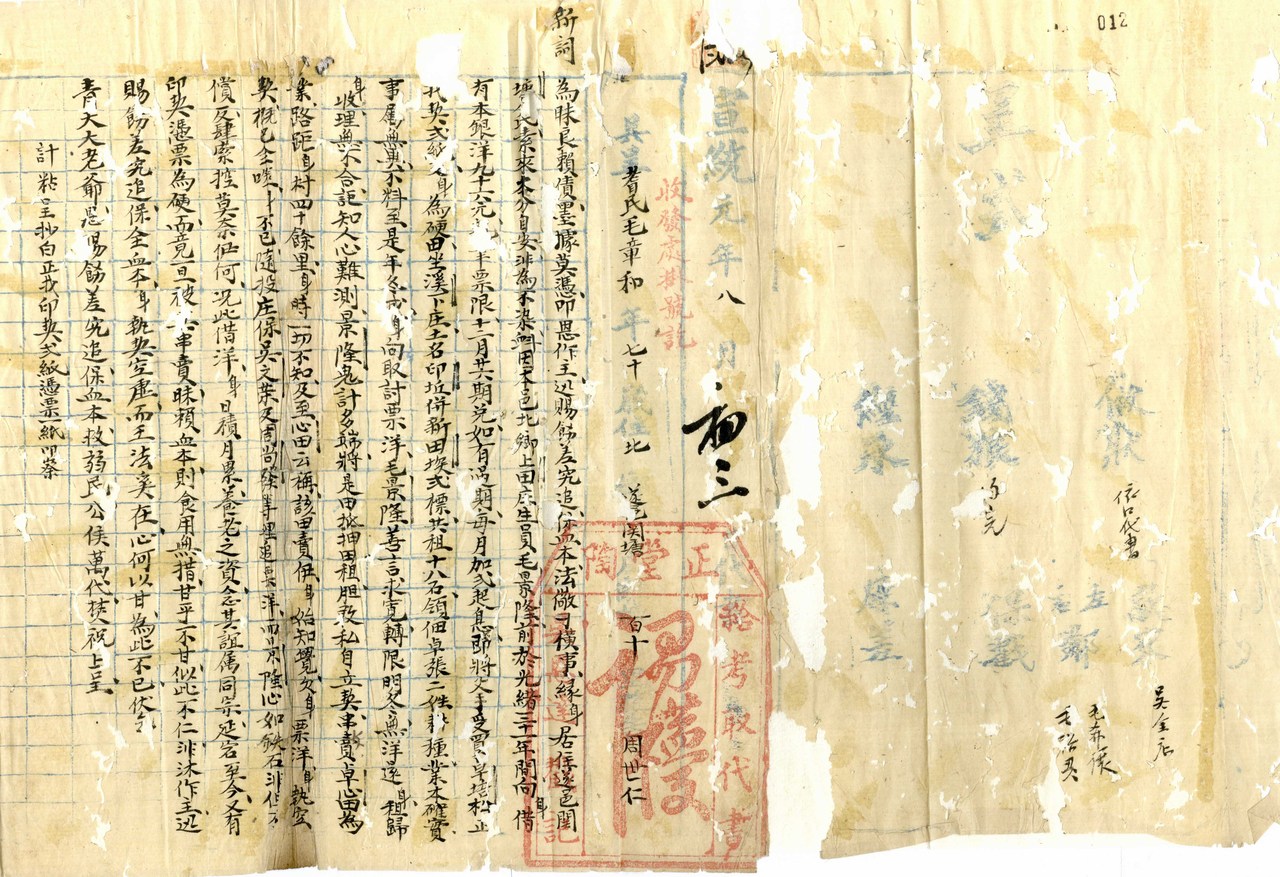 在清朝宣统元年(1909年)的“毛樟和控毛景隆昧良赖债案”卷宗里,吴晓婷看到了这样一幕:毛景隆以两张地契为抵押向毛樟和借款,不仅逾期不还,反将土地私卖他人。毛樟和怒而向知县呈状起诉。