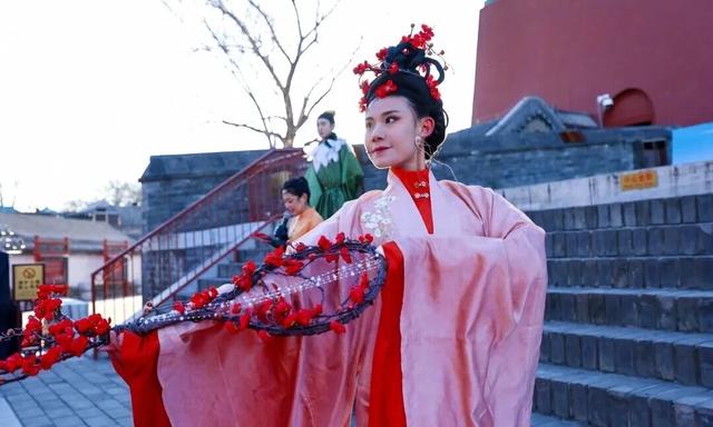 生肖兽首复刻:小路旁有兽首摆件,和新春花堆同框很有年味;