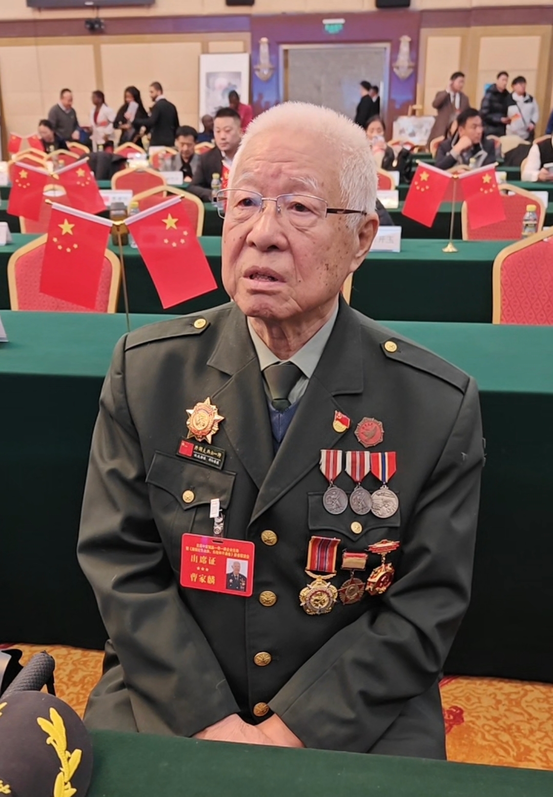 老兵曹家麟胸前挂满勋章,他14岁参军,15岁入朝作战,今年90岁,不仅身体强健,还透着几分新潮——他举着手机,不时为老战友们拍照、录像,定格相聚的美好瞬间。当被问到15岁入朝作战的经历时,曹家麟说:“人对生死的理解,只有在意识到生命只有一次时,才会真正面对内心的选择——是畏惧死亡,还是勇于献身。我刚过江的时候,因为年纪小,还不懂这个道理。后来参加抗美援朝、把美帝国主义打出去,亲眼见到了真实的战场情况,看到那些英勇牺牲、不怕流血的战友,还有那些英雄事迹和负伤的同志,这成了我人生中最宝贵的经历和收获。我也从一开始对生死懵懂无知,慢慢开始明白这个道理,而这份感悟,也成了我克服困难、直面危险的动力。”