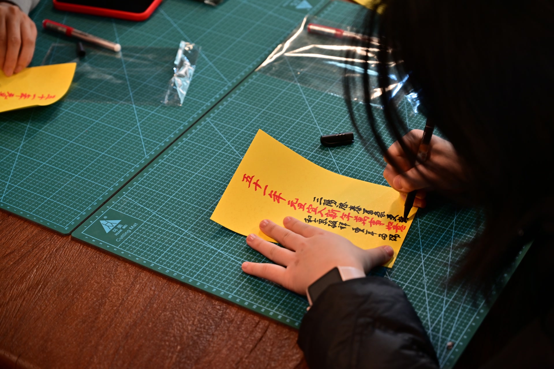 观众罗叶子第一个完成了描红,“亲手描摹乾隆皇帝在二百多年前写下的祝福字帖,而且同样是丙午马年,有一种穿越时空的感觉。”作为一名历史专业学生,她最近每天都会来一史馆查阅档案,“明天就要回家过年了,刚好把这份立春祝福跟家人分享。”