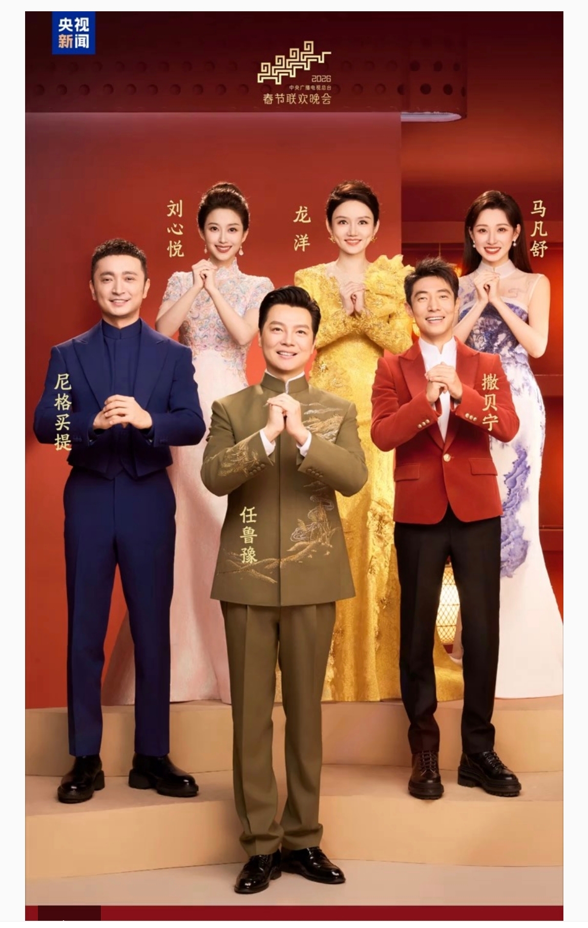 2月4日,中央广播电视总台《2026年春节联欢晚会》发布主持人阵容。任鲁豫、撒贝宁、尼格买提、龙洋、马凡舒、刘心悦将共同担任2026年总台春晚北京主会场主持人。四地分会场主持人为:黑龙江哈尔滨分会场杨帆、姜多;浙江义乌分会场郭若天、贺传;安徽合肥分会场朱迅、白羽;四川宜宾分会场张韬、王楚涵。