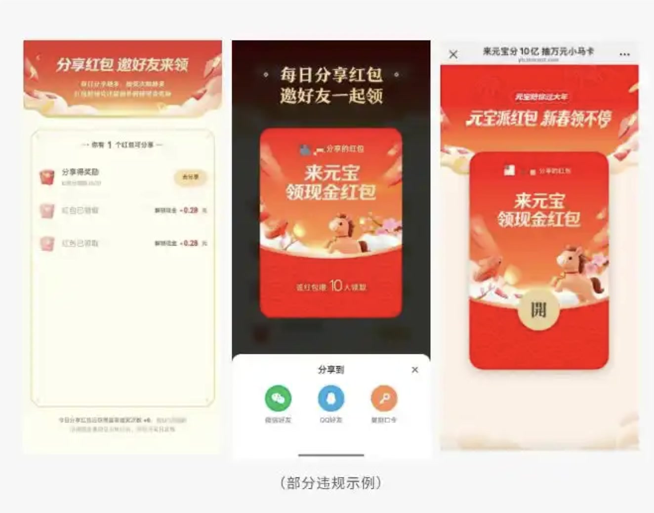 微信方面表示,近期对以春节为主题集中爆发的过度营销、诱导分享等违规行为进行打击。在此背景下,微信收到用户针对元宝的反馈和投诉,其相关春节营销活动存在通过“做任务”“领红包”等方式诱导用户高频分享链接到微信群等场景,干扰平台生态秩序、影响用户体验、对用户造成骚扰。