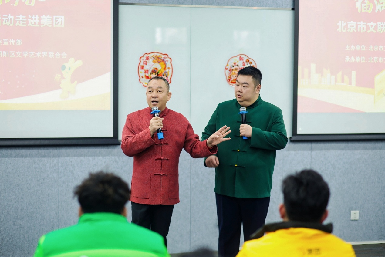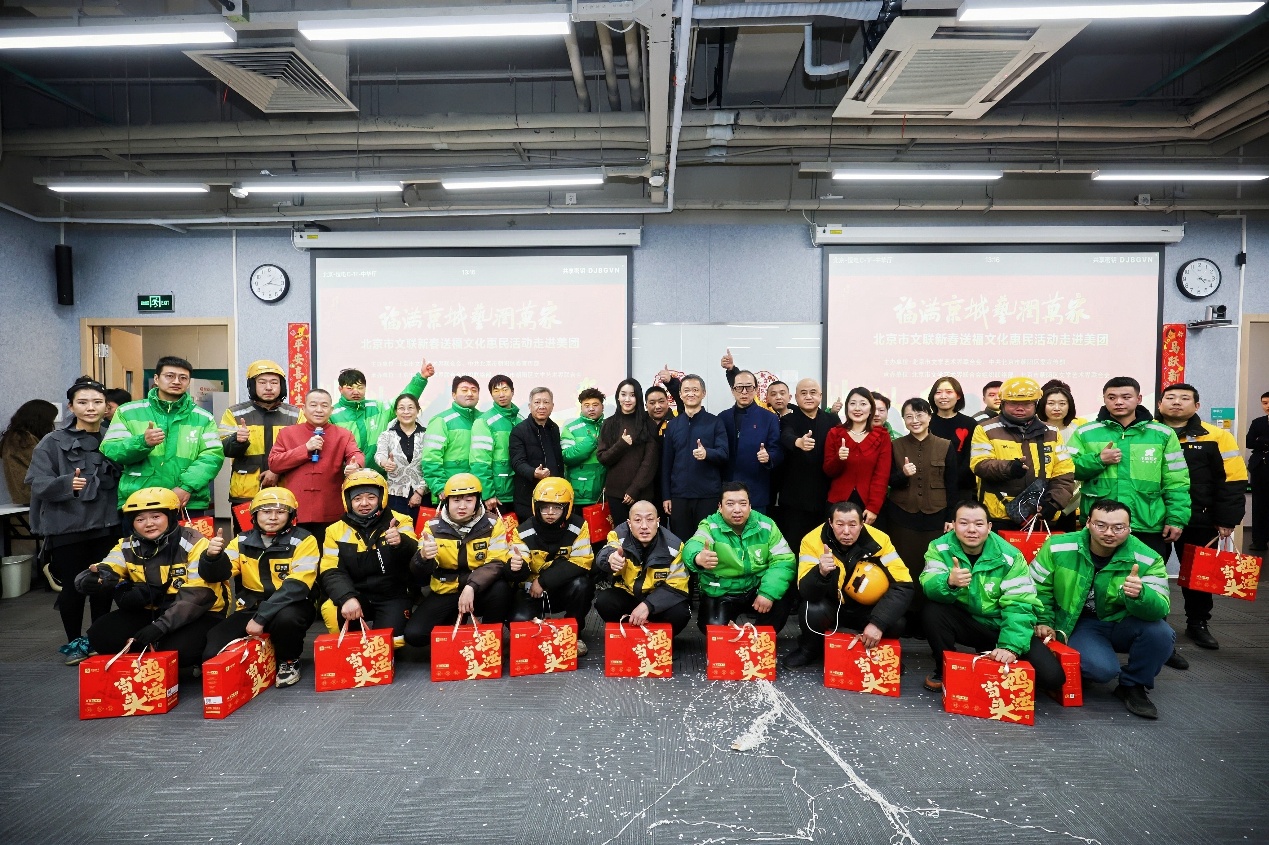 2月3日下午,“福满京城 艺润万家”北京市文联新春送福文化惠民活动走进美团总部,为平日奔波忙碌的美团骑手们带来了一场充满年味与暖意的文化盛宴。