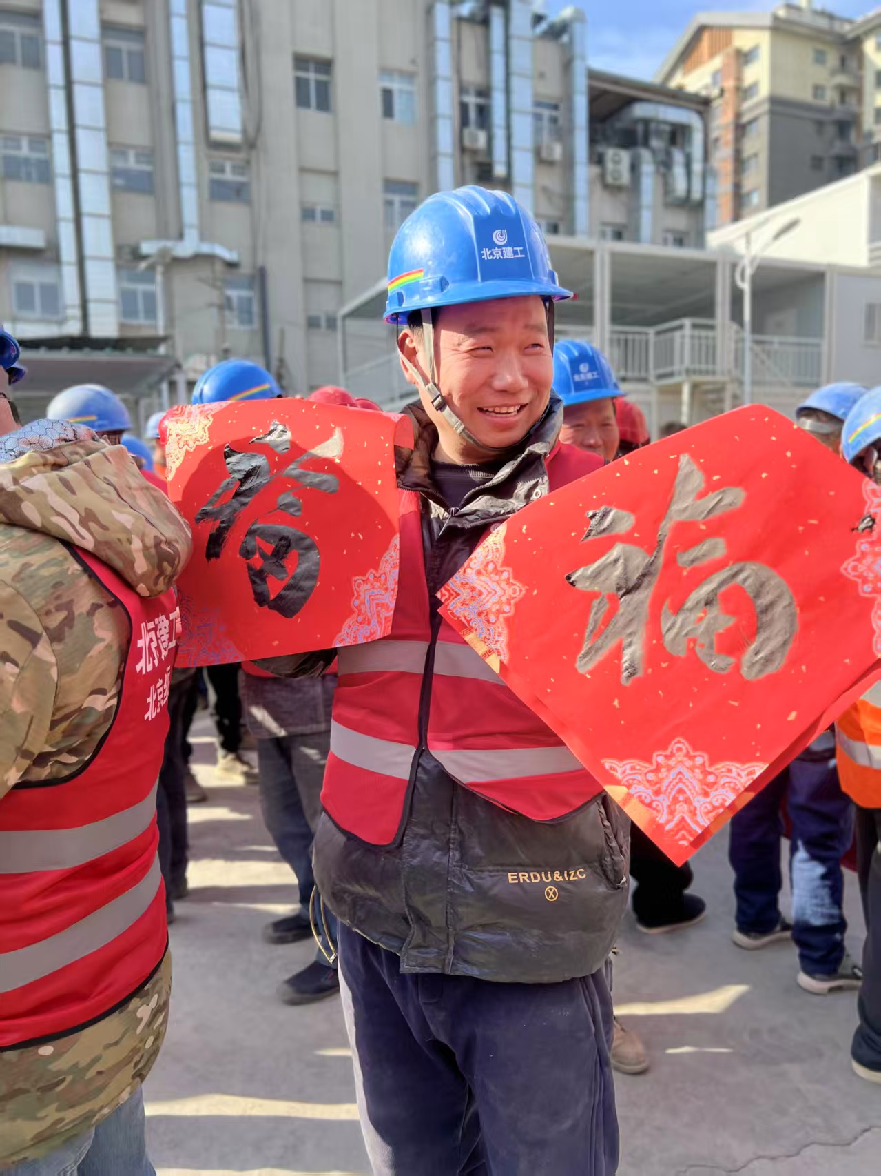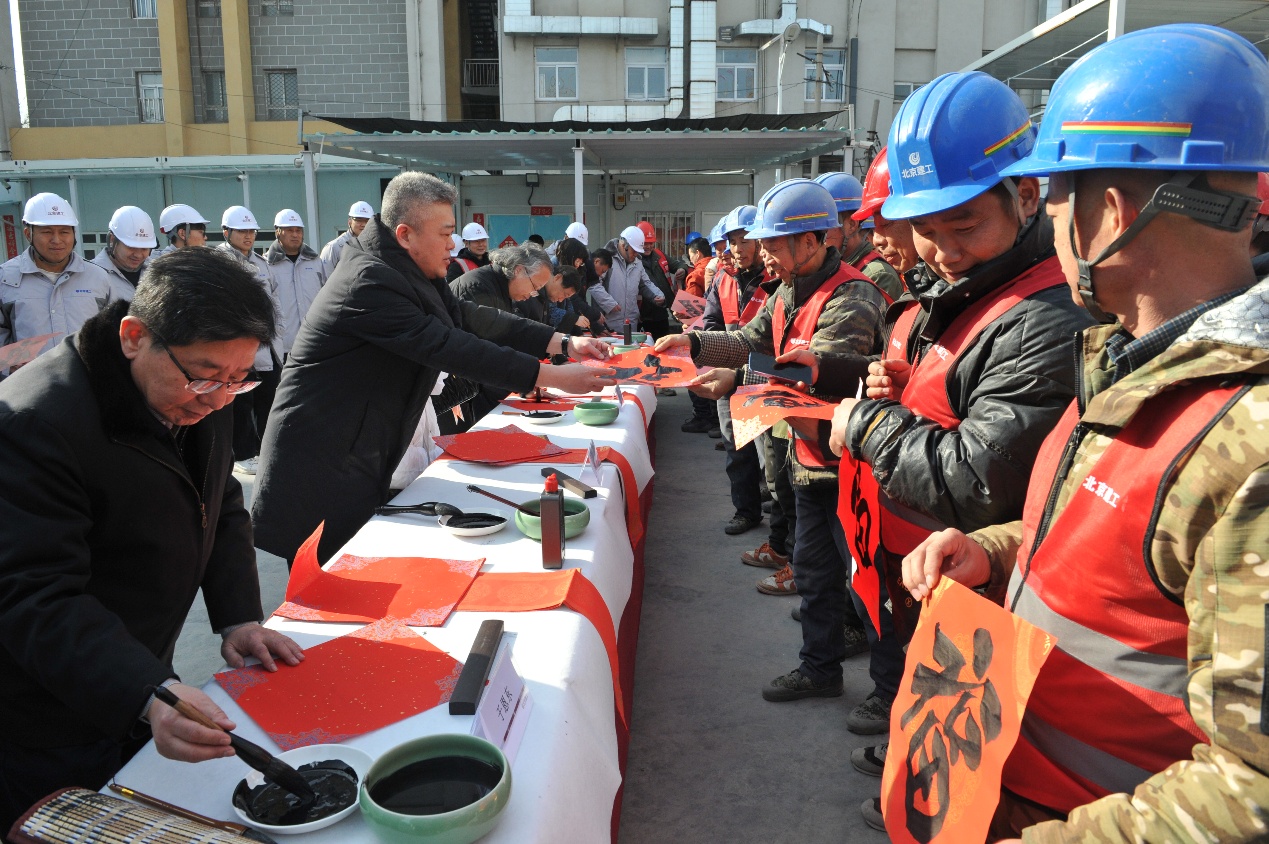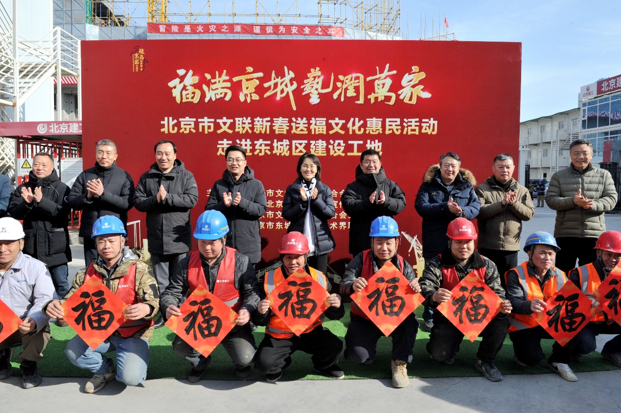 2月3日,北京市文联举办的“福满京城 艺润万家”新春送福文化惠民活动,走进东城区民生工程建设工地。