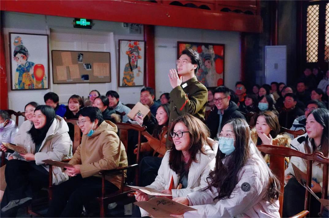 拥有400年历史的颜料会馆,除演出传统戏曲外,引入沉浸式戏剧《宋美龄的耳环丢了》,充分利用会馆各空间,让观众与四位“长官”穿梭于不同建筑,戏回民国时代,探秘剧情真相。演出之余,观众可在“悦合颜・新京菜・下午茶”品茗,在“罗岚书店”阅读,在“香若初・汉服”非遗手工馆体验汉服文化。在湖广会馆,驻场演出沉浸式音乐剧《金风玉露》将戏曲元素与音乐剧深度融合,演出空间从舞台延伸至两层观众席,带来别有生趣的碰撞与惊喜。观演前后,观众可在“点绛唇”茶楼品茶,也可走进北京戏曲博物馆了解京剧发展史。在正乙祠戏楼,昆曲《牡丹亭》巧妙利用戏楼多层构造,让戏中人物走下舞台“游园”,与观众近距离互动,戏楼定制主题糕点、提供纪念票盖章打卡服务,让观演体验更具仪式感。